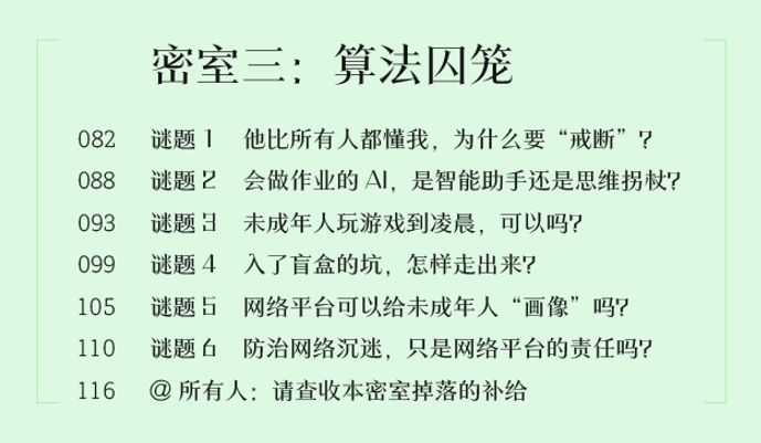 由中国少年儿童新闻出版总社出版的《AI时代青少年自护宝典》套书,正是基于这一共识的实践成果:包含面向青少年的《网络迷城闯关指南》和面向成人协作者的《家校手册》。
