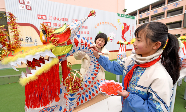 近年来,浙江省台州市仙居县横溪镇中心小学坚持党建引领,挖掘、传承当地非遗板凳龙灯文化,让孩子们在体验非遗文化的同时,增强知识,快乐成长。中国教育报-中国教育新闻网通讯员 王华斌 摄