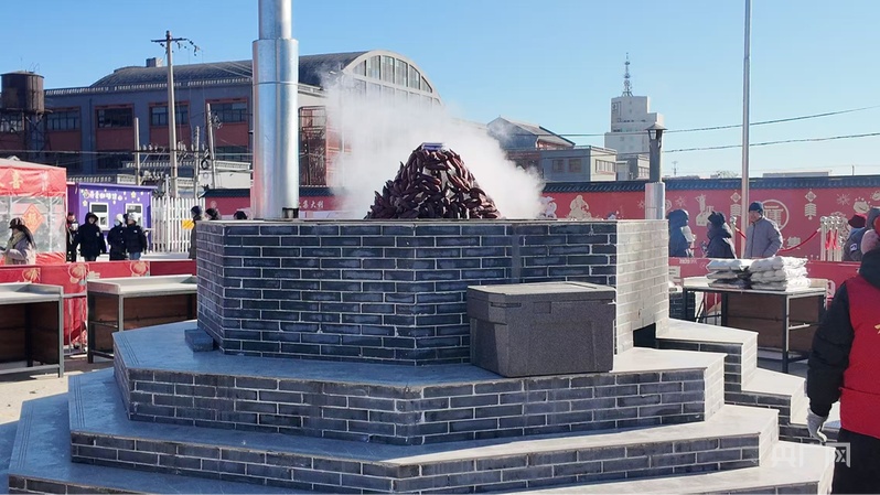 走出比赛区,迎来的便是大集“明星打卡点”——直径2.25米的“宁河第一锅”,每个集日,老师傅都会用这口大锅烹制炖肉、熬菜、煮饺子。今年,这口锅还新增了酒糟馒头、酒糟扣肉等美味,尤其是腊月初八,还会推出“万人共享腊八粥”活动,精心熬制的腊八粥免费请大家品尝。