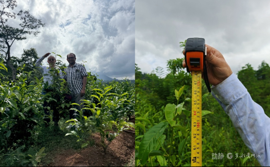 每次来到Gamini的茶园里,这个70岁的茶农都会笑着拿出他的糖果给贵大的师生们吃。这个采茶季,在他的同一片茶园里,出现了两种截然不同的长势:贵州大学科研团队试点种植的区域相比此前的茶区,茶树高了40公分,叶片更宽大,色泽也更绿更鲜亮。