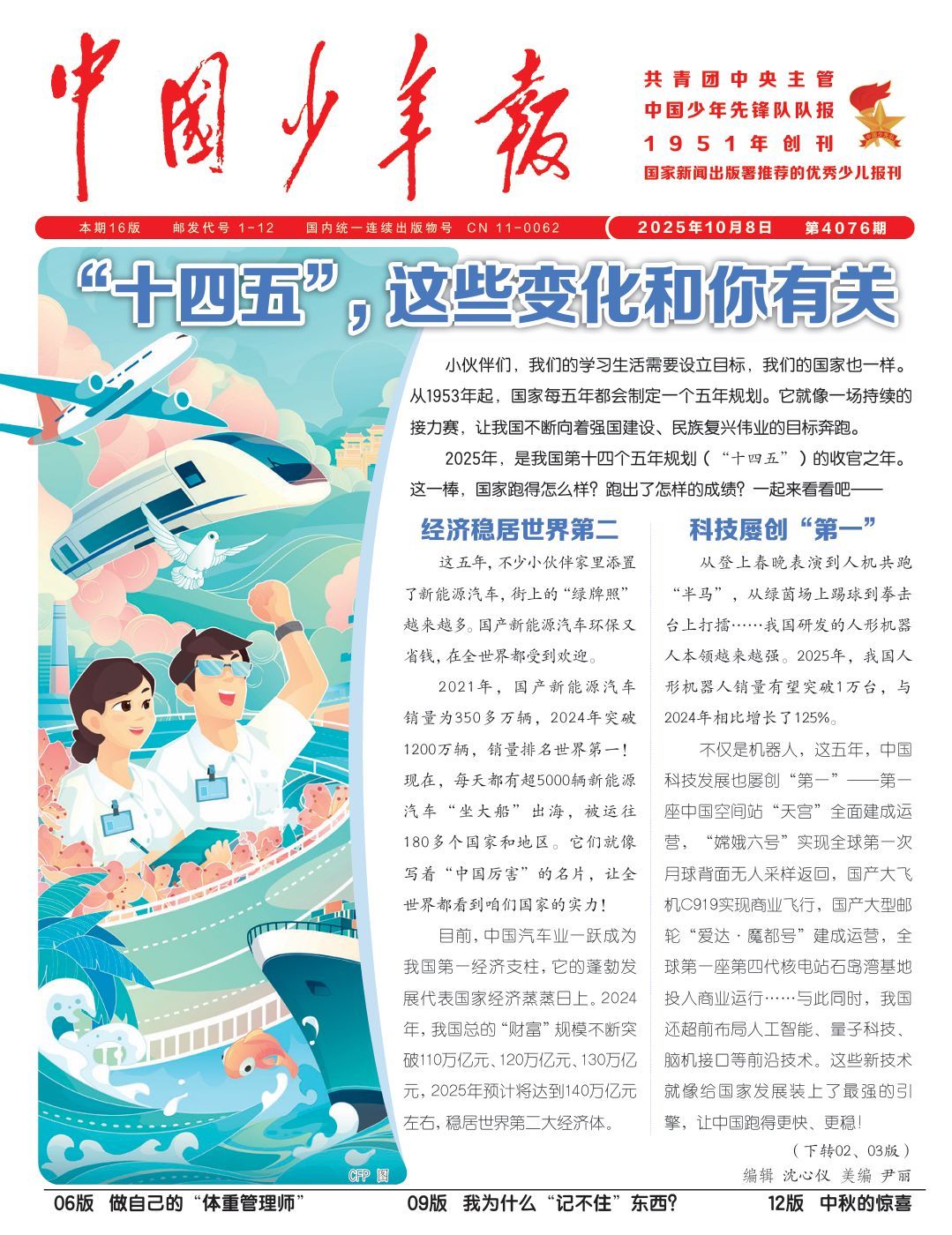 2025年,是我国第十四个五年规划(“十四五”)的收官之年。这一棒,国家跑得怎么样?跑出了怎样的成绩?《中国少年报》在4076期的01-03版为大家划好了重点,一起来看——