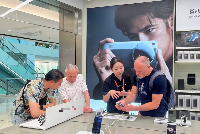 外国游客正在试用中国国产手机 图片来源:新闻联播