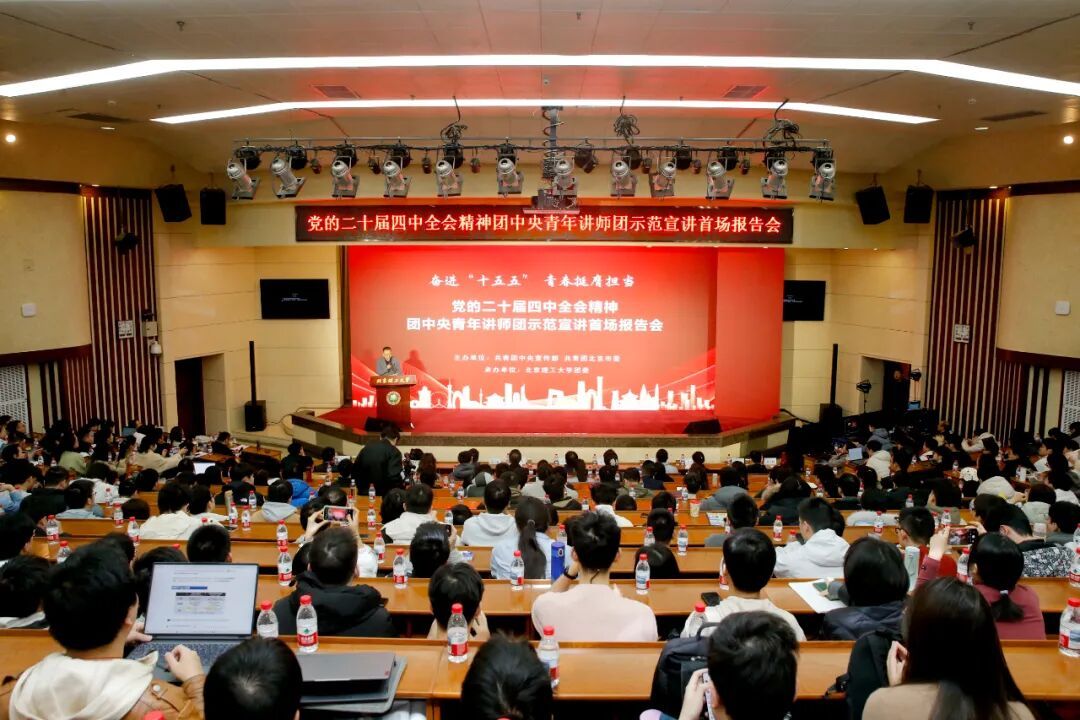 11月18日上午,共青团中央在北京理工大学举行青年讲师团首场示范宣讲报告会,宣讲党的二十届四中全会精神。报告会紧紧围绕习近平总书记重要讲话和全会有关文件,引导青年深入学习、系统领会全会精神,深刻领悟 “ 两个确立 ” 的决定性意义,坚决做到 “ 两个维护 ” ,把思想和行动统一到全会精神上来,奋进 “十五五”、建功新征程,奋力书写为中国式现代化挺膺担当的青春篇章。