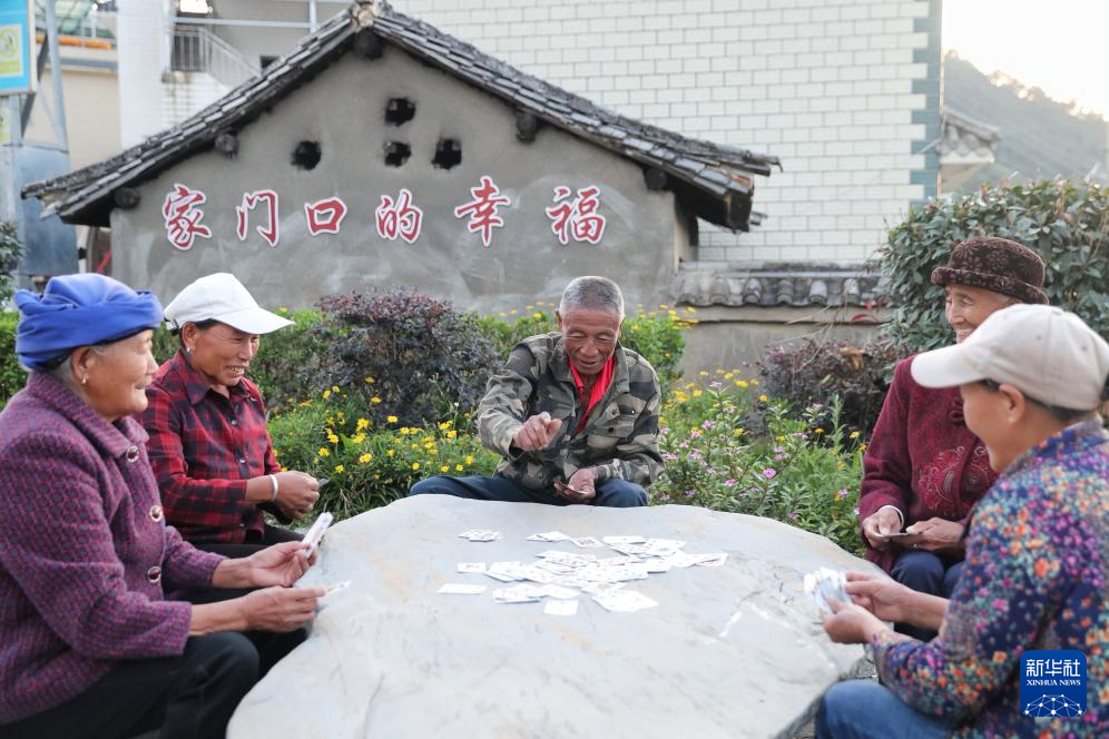 10月30日,小湾东镇居民在新建的口袋公园内休闲。