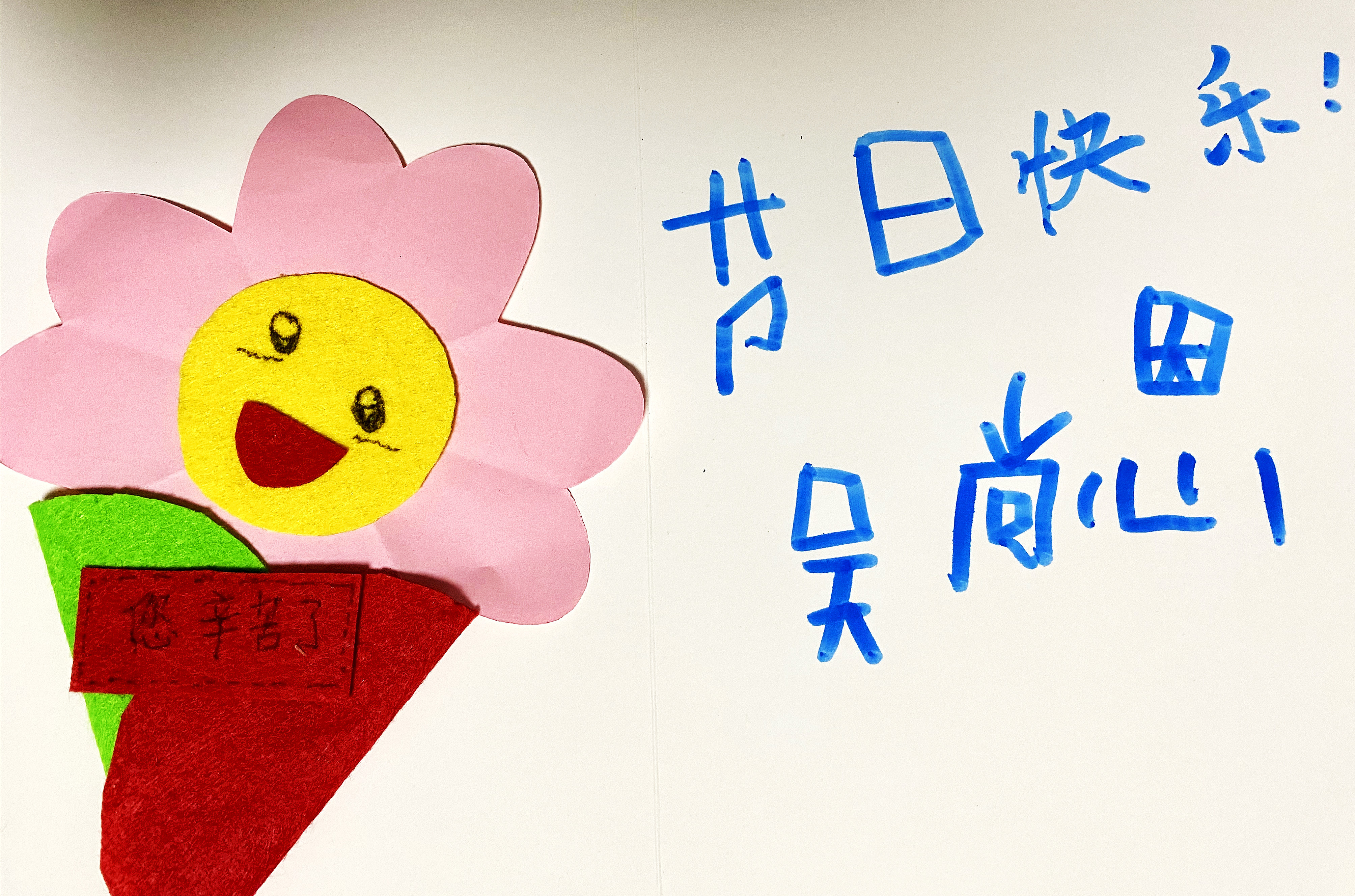 (孩子亲手制作的贺卡,稚嫩的“节日快乐”,是孩子最真的祝福。)