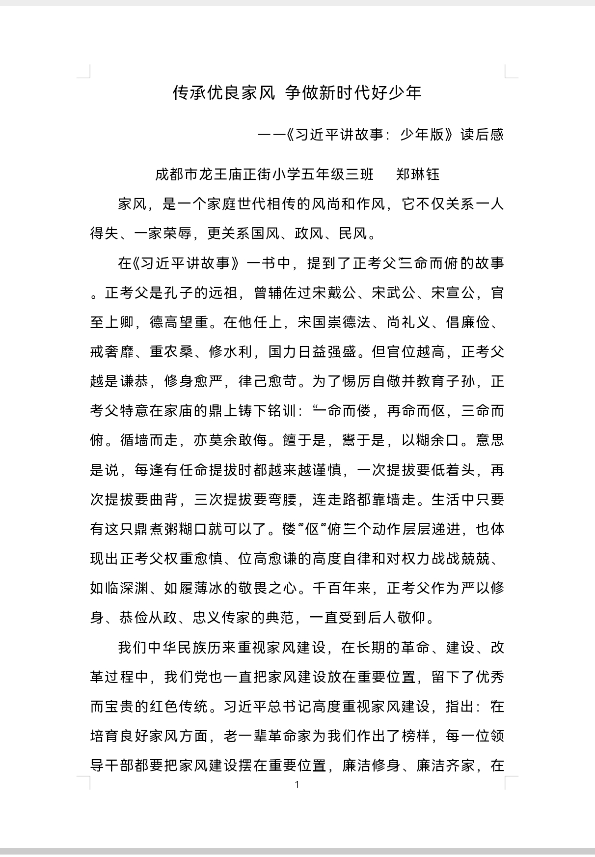 郑琳钰 成都市龙王庙正街小学 五年级三班