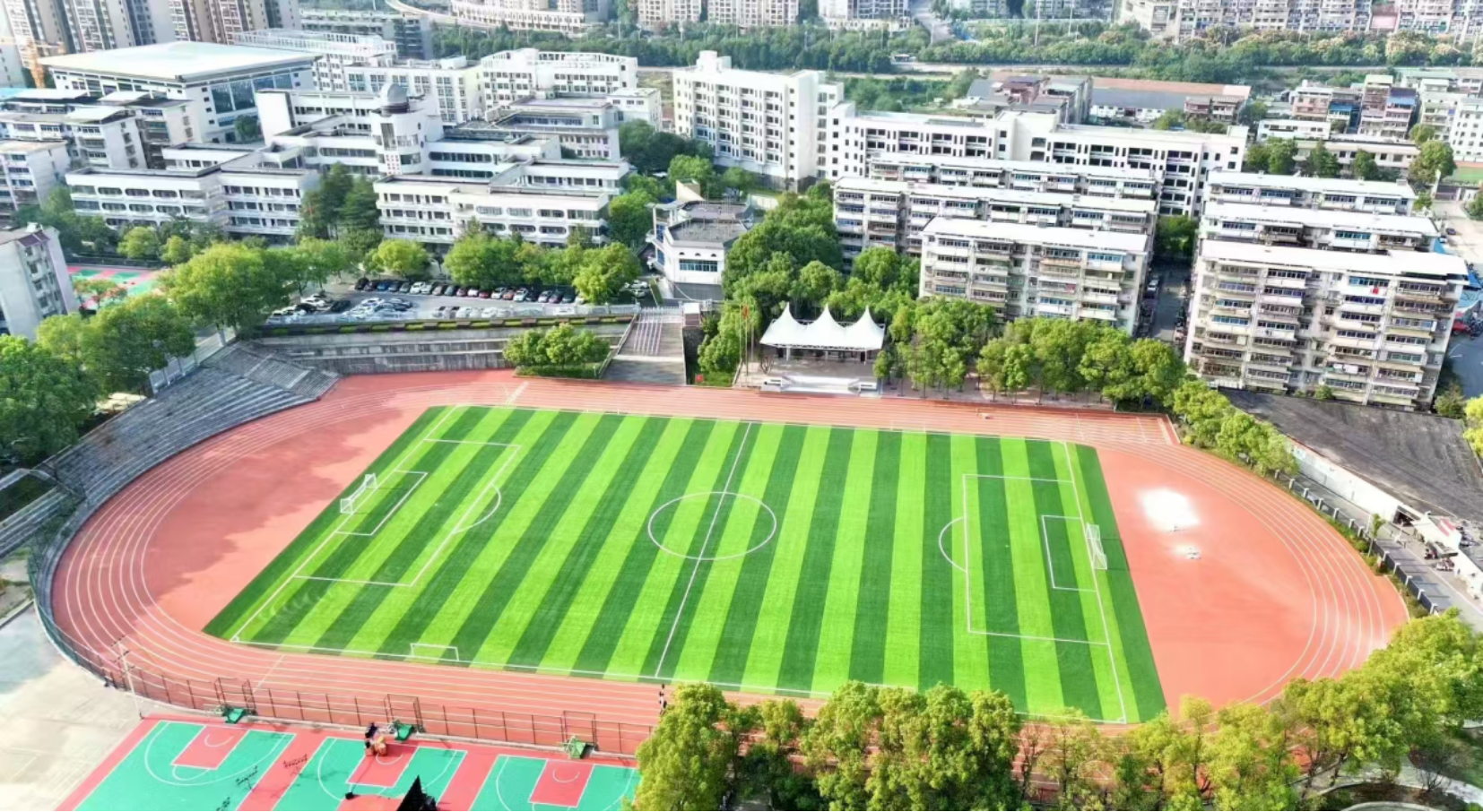 5.提质改造,建设最美校园。针对学校生均校园面积与生均教学用房面积不够的问题,学校积极推进初中部扩建项目建设,并于2024年9月圆满竣工投入使用,新增2400个学位,有效化解了人民群众就读优质学校难的困扰,生均校园面积、生均教学用房面积切实增加,学校办学条件、校园环境进一步改善。