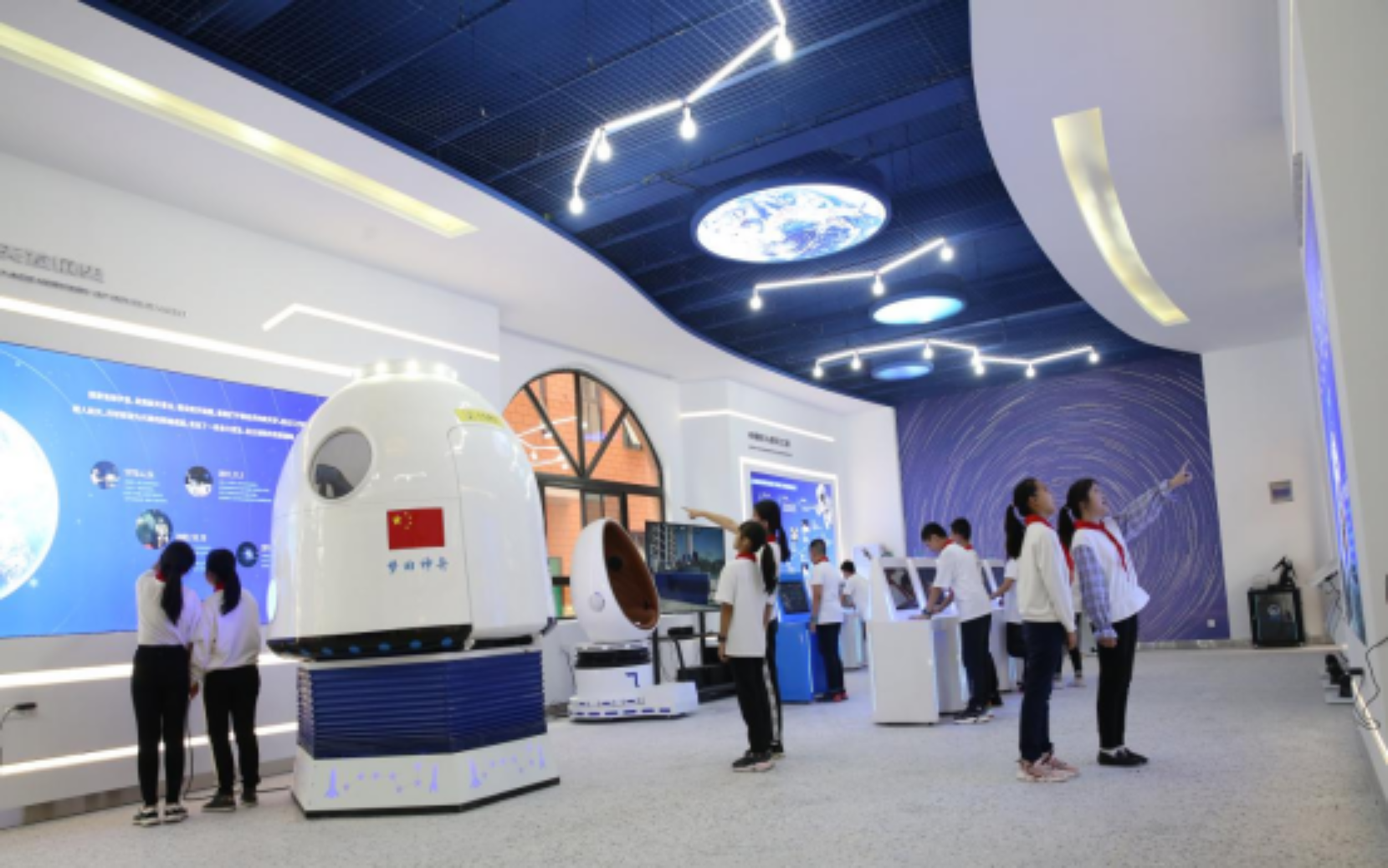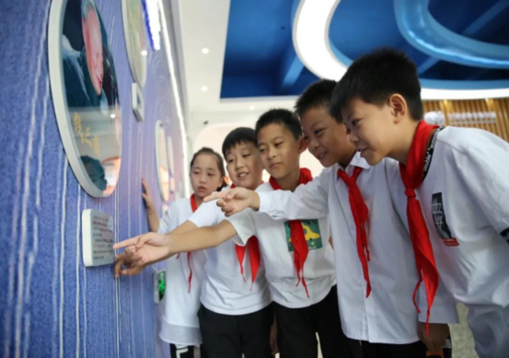 要让抽象的精神力量走进孩子心里,首先要搭建可感知的载体。钱学森小学深知场景育人的力量,精心打造了一系列以钱学森精神为内核的沉浸式空间,让学生在耳濡目染中感受科学家的家国情怀与治学态度。走进校园,“科学家大厅”是孩子们的精神打卡地,每天清晨,学生们背着书包走进大厅,抬头便能看到这些为国家科研事业奉献一生的先辈身影。学校还会定期在学校航空航天体验馆内举办“科学家故事分享会”,老师、学生轮流上台讲述自己敬佩的科学家的事迹,在分享与倾听中,将科学家的精神力量内化于心。这些沉浸式场景不再是冰冷的陈列,而是成为了“活的课堂”。学生们说:“以前觉得‘爱国’是很遥远的词,直到看到钱爷爷的事迹,我才明白,爱国就是像他一样,心里始终装着祖国,愿意为祖国的发展付出努力。”