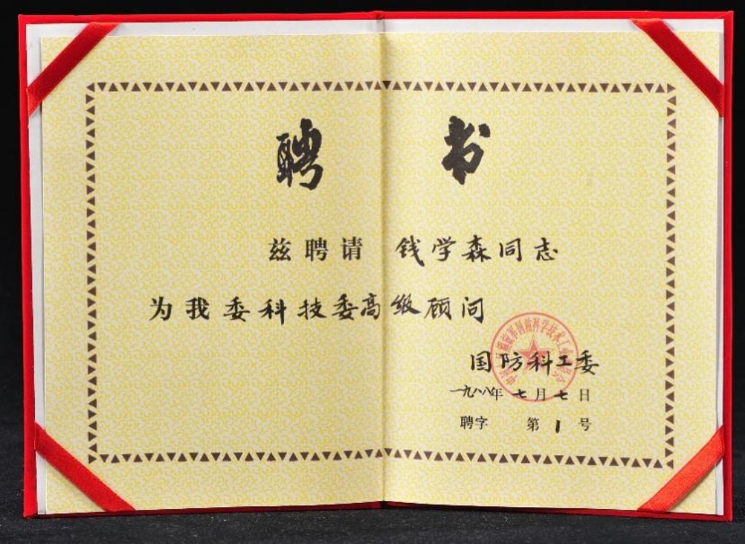 1988年7月7日,钱学森受聘为国防科工委科技委高级顾问。
