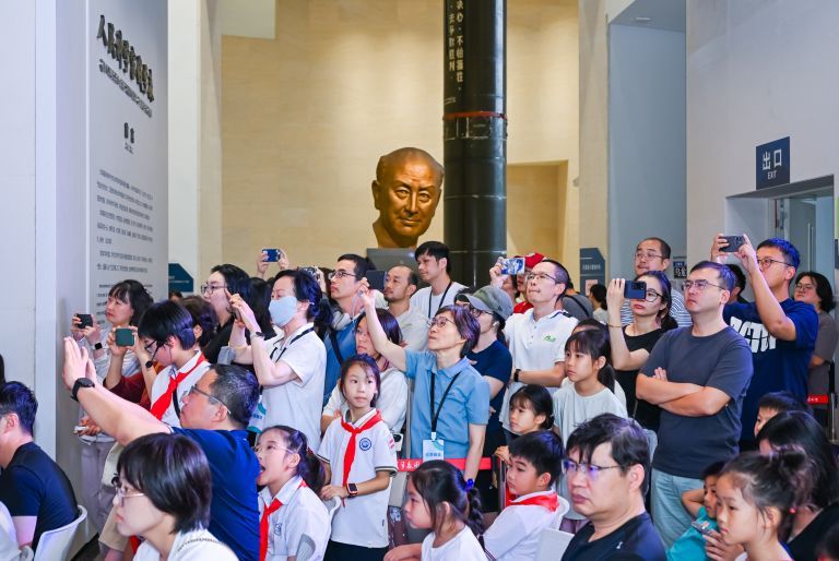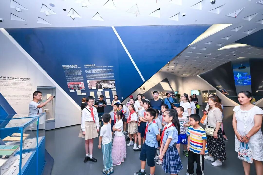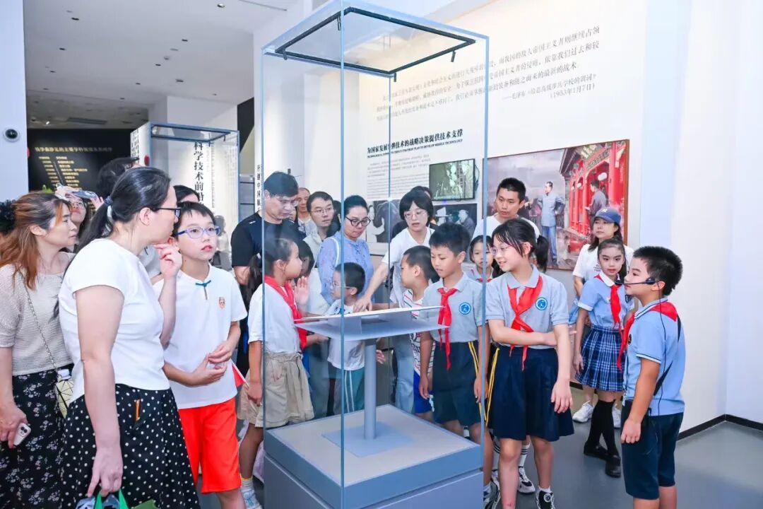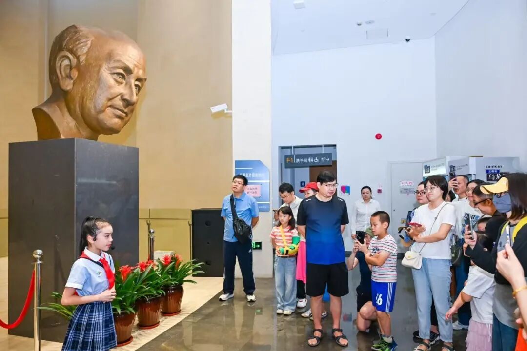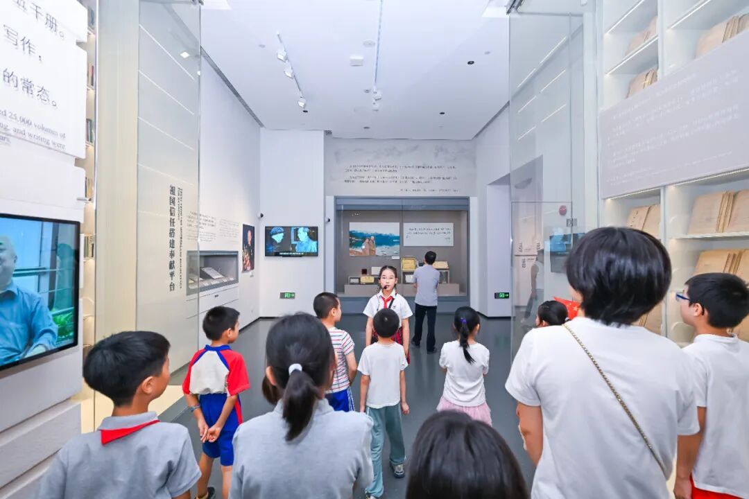 演出后, “星空少年”讲解团 的小小讲解员引导现场观众参观基本陈列“人民科学家钱学森”,以文物故事串联起钱学森波澜壮阔的人生历程。