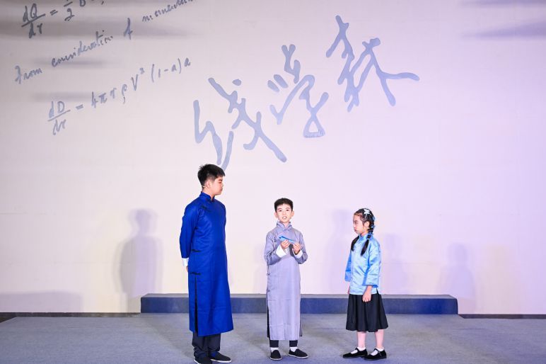 第一篇章“微光启航”,由 “星空少年”讲解团 带来情景剧演出《纸飞机上的中国心》,引领观众回到1925年的北师大附中校园,在梧桐叶隙洒落的秋阳里,看少年钱学森与纸飞机、与科学的微光悄然对话。