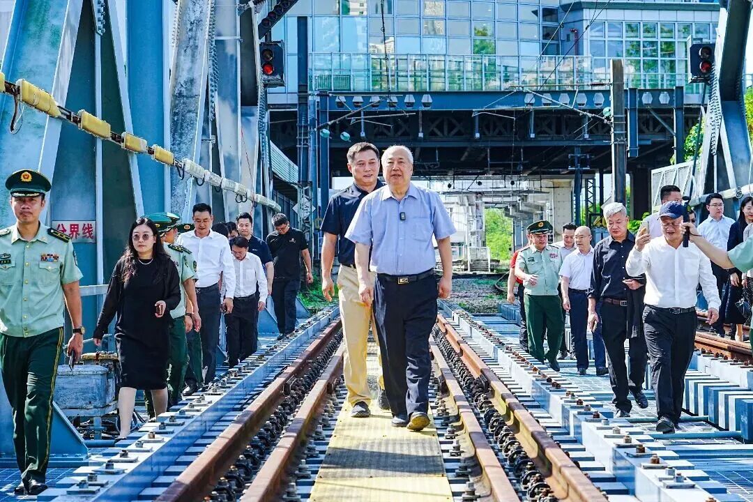 上午9时30分,钱永刚馆长和武警官兵一起走上罗湖桥,向官兵介绍自己和父亲钱学森归国的艰辛历程“70年前我们就是通过罗湖桥回到祖国的怀抱”,钱永刚 馆长 边说边指着河上的铁桥介绍。