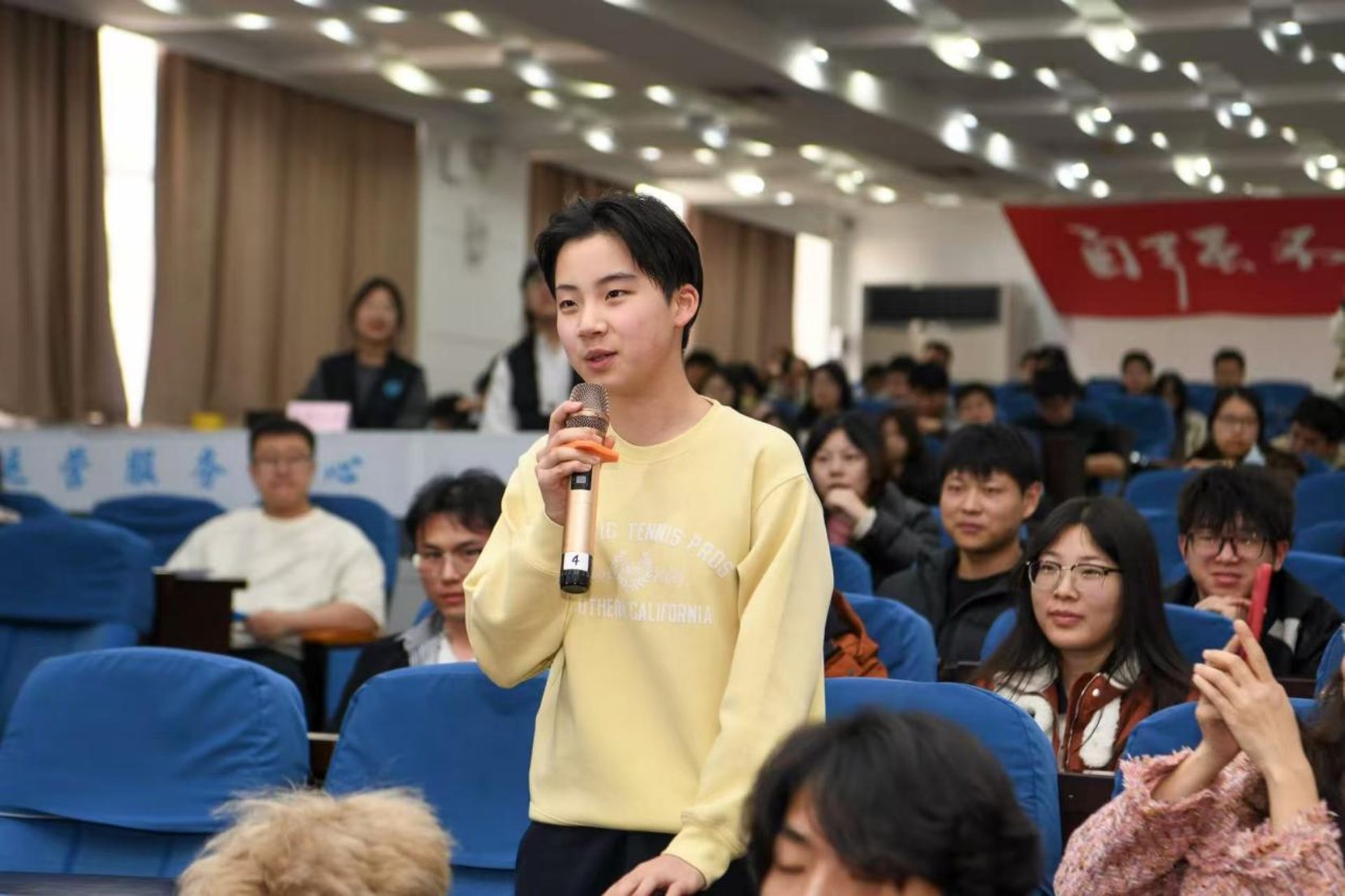 在互动提问环节,同学们围绕“科学家精神传承”“钱学森先生生平事迹”等话题踊跃提问,钱永刚一一解答并在讲座结束后为东北大学秦皇岛分校学子题词寄语:“热爱祖国,崇尚科学,追求真理,报效人民!录钱学森寄语,与东北大学秦皇岛分校全体同学共勉!”