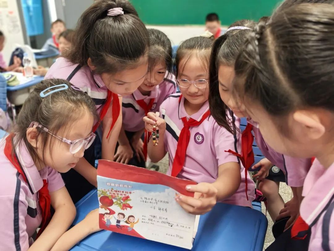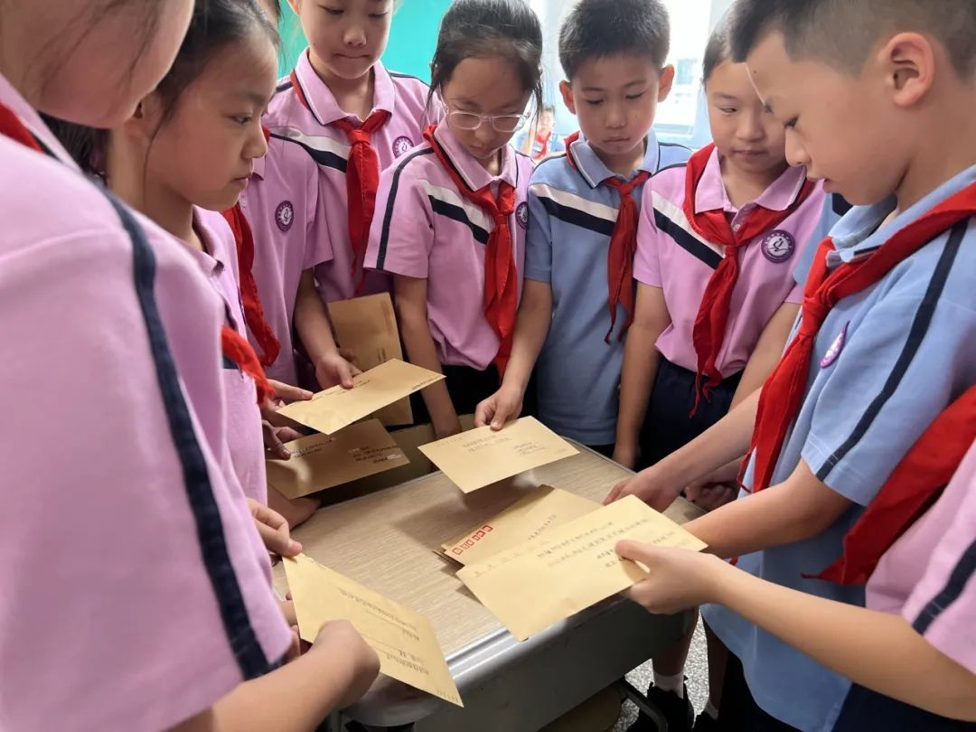 “快看我的信!”一声惊喜的呼喊吸引了伙伴们的目光。一名队员高举的信封中,静静地躺着一条彩色手链。手链精巧的做工仿佛诉说着制作者的用心、浓浓的友情。队员们围拢过来,欣赏这份“意外之喜”,收到礼物的队员将手链贴在胸前,笑容比夏日的阳光还要灿烂。