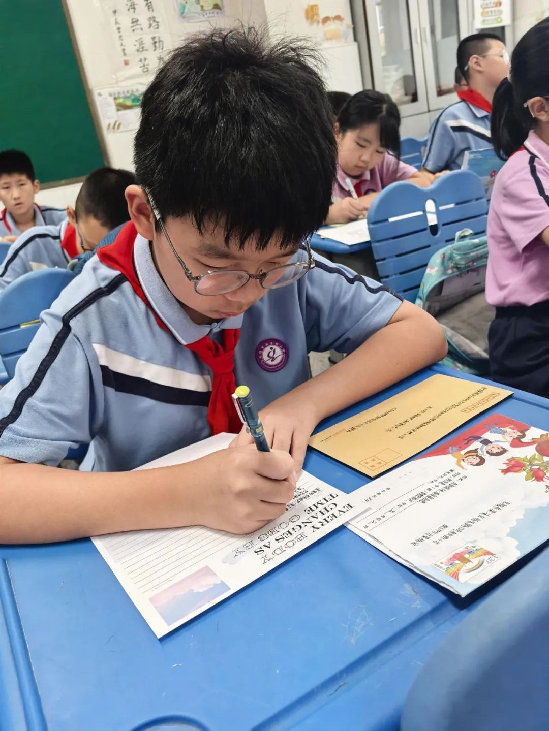 感动化作笔尖的涟漪,队员们当即铺展信纸,给远方的伙伴们回信。有的队员细致勾勒鼋头渚的夏荷,有的队员分享学习游泳的趣事,一些队员向远方的伙伴们发出邀请:“来无锡,我带你们吃酱排骨”“暑假我学捏惠山泥人,你们喜欢什么手工?”字里行间流淌的,不仅是江南水乡的生活剪影,更是对“何日更重游”的期待。