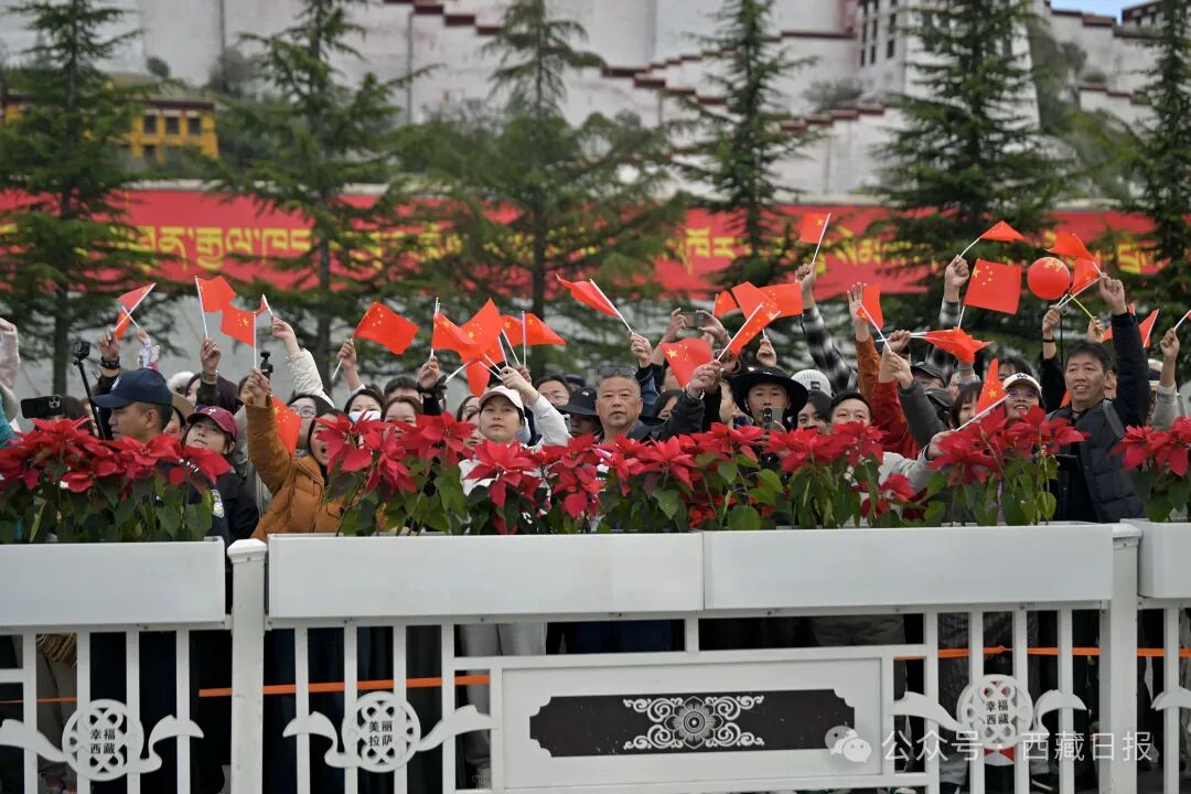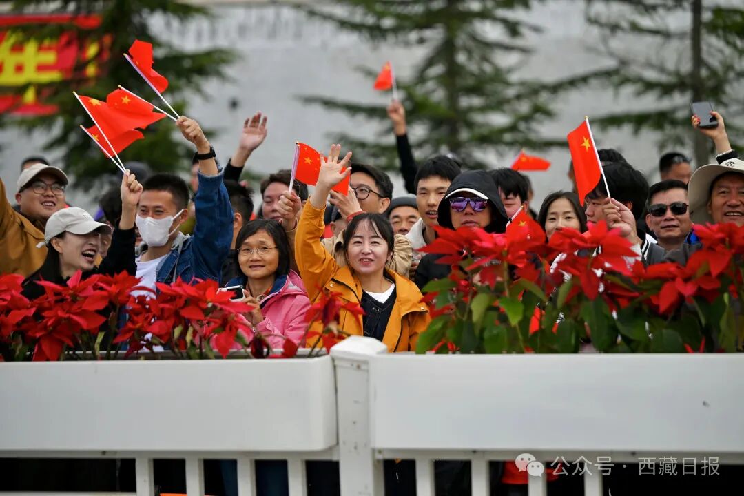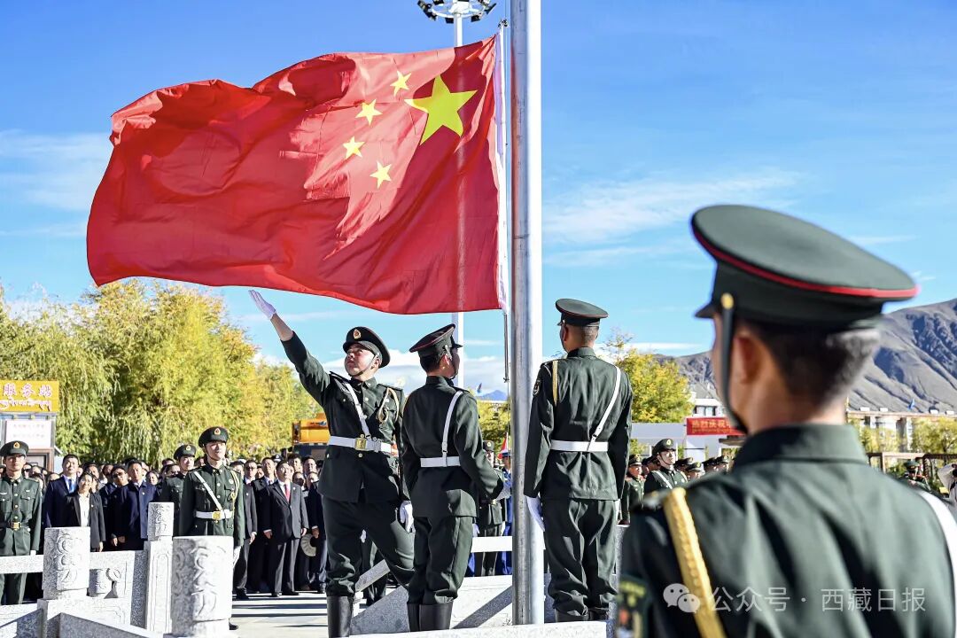 让我们一同走进这庄严时刻,看五星红旗在布达拉宫前、珠峰脚下、草原之上冉冉升起,听国歌在河谷间、古城里、村落中激昂回荡,感受西藏人民对祖国最深沉、最持久的爱!