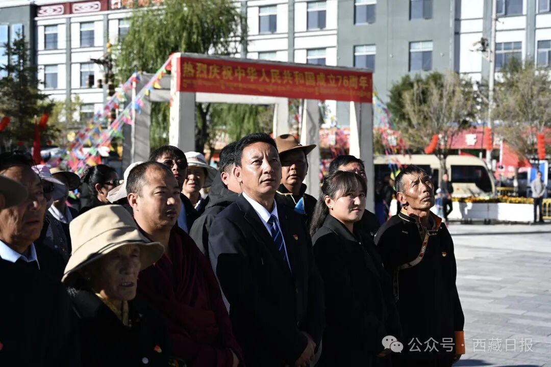 今天,西藏各地同步举行庆祝中华人民共和国成立76周年“升国旗、唱国歌”仪式,各族群众怀着崇敬与感恩之情,以最赤诚的方式祝福祖国。