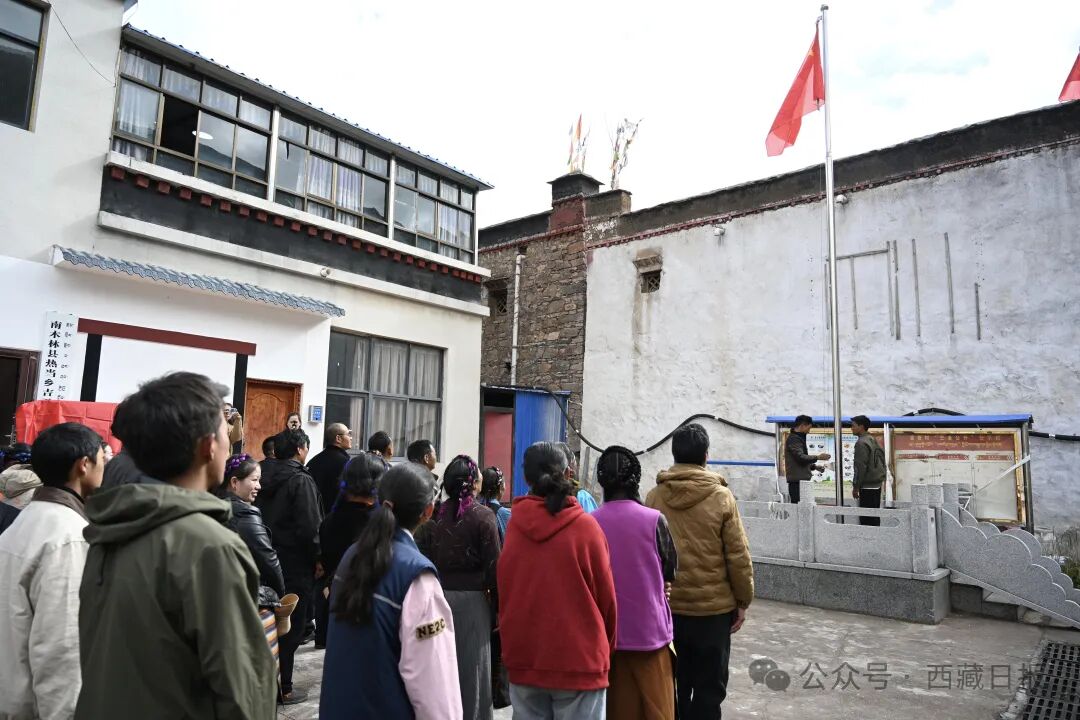 10月1日,日喀则市南木林县吉吾村举行庆祝中华人民共和国成立76周年“升国旗、唱国歌”仪式。记者扎西顿珠 杨子彦 通讯员 王乾