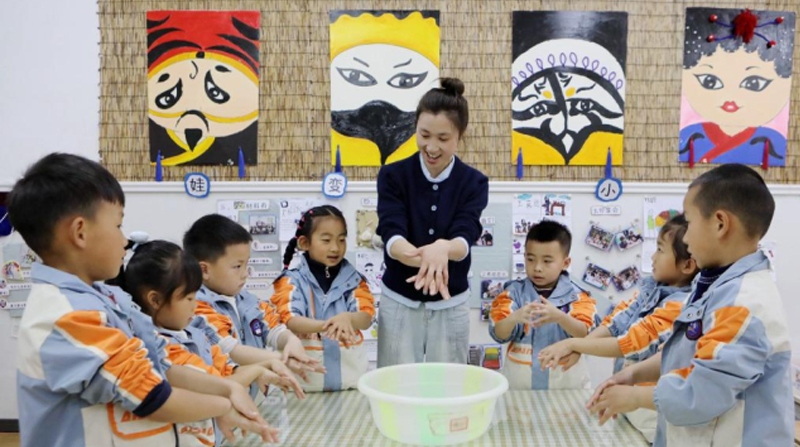 “新农村,大变化,乡村风景美如画。鲜花齐放引蝶飞,空气清新游人醉。”