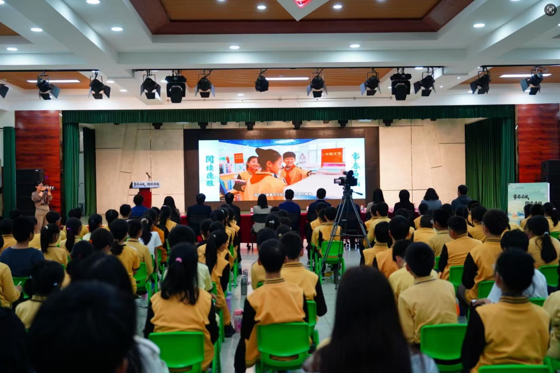 北京第二实验小学(德胜校区)的孩子们观看“书香西城 阅读德胜“宣传视频。
