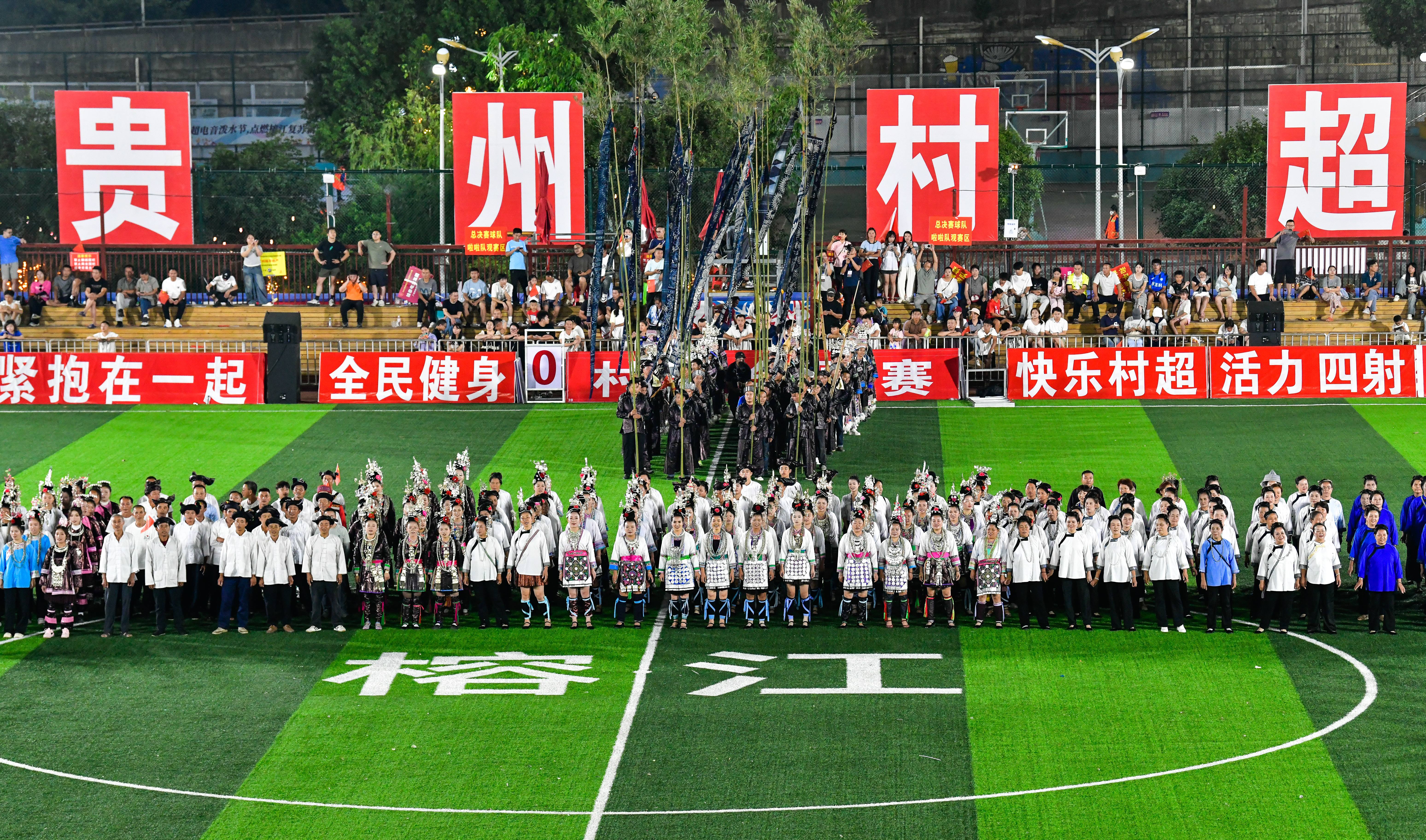 2025年8月23日,村民们在贵州“村超”球场演唱侗族大歌。当日,2025年首届“村超”全国赛总决赛在贵州榕江县“村超”球场举行。赛事期间同时举办丰富多彩的民族歌舞展演、无人机表演、大型烟花秀,吸引数万观众现场观赛。近年来,贵州“村超”“村BA”等草根赛事持续升温,巧妙融合体育竞技、民族文化与文旅消费,打造“体育+”模式,撬动乡村流量与经济增量,赋能乡村振兴。