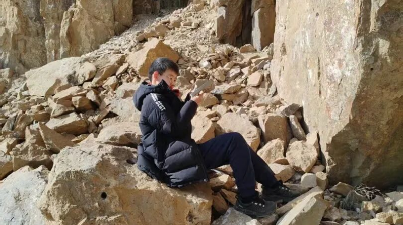 2025年1月11日,倪景辰和父母来到门头沟区,在九龙路森林保护站附近的山坡上,发现了一块有特殊印痕的岩板。