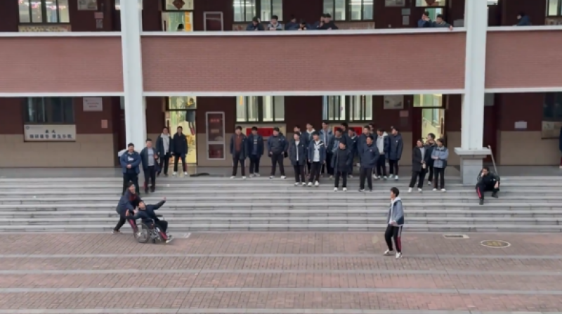 满屏青春气息!高中生推受伤同学坐轮椅打羽毛球