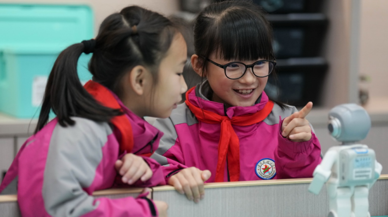 3月17日,在湖南湘江新区雷锋小学,老师在数学课上使用动态演示工具将抽象的数学原理具像化展示,帮助学生理解。