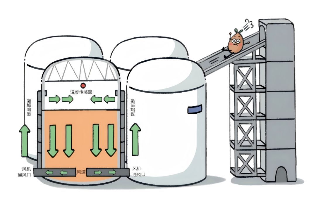 夏天,室外温度飙升时,“空调系统”就会启动。在河南的许多粮仓,人们会采用一种叫“内环流控温”的黑科技:冬天储存冷气,到了夏天会循环利用,让仓库始终凉爽。
