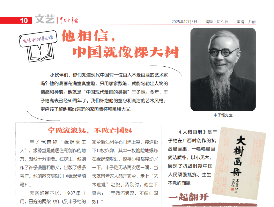 今年,丰子恺离去已经50周年了。我们怀念他的童心和高洁的艺术风格,更应该了解他那份深沉的家国情怀和民族大义。