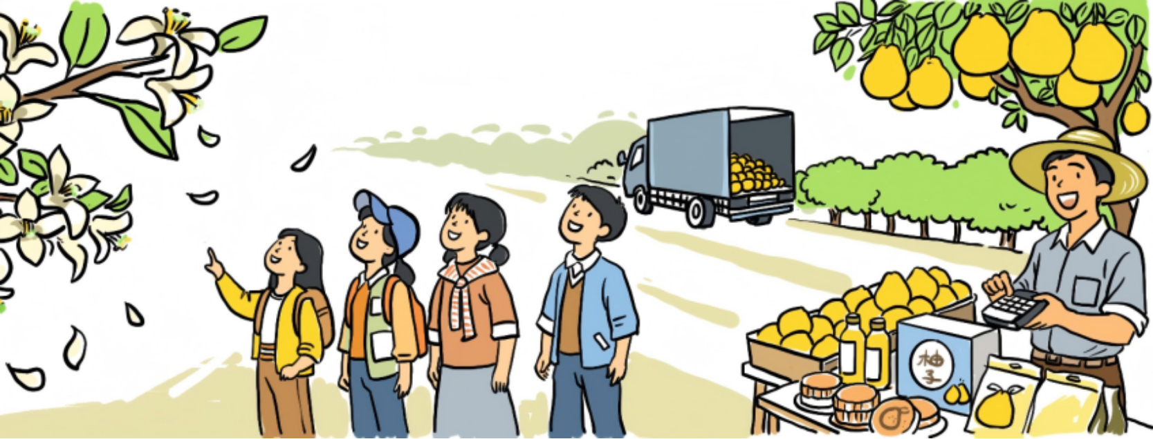 柚子只能当水果?那可不是!当地开动脑筋,春天赏柚花,秋天体验采摘,还开发了柚子茶、柚子月饼、柚子润喉糖……鲜果保存难的问题解决了,果农的钱袋子也更鼓了。