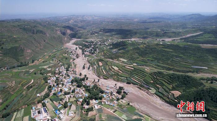 8月11日,航拍榆中县马坡乡上庄村,目前已有90名受灾民众在此安置。九美旦增 摄