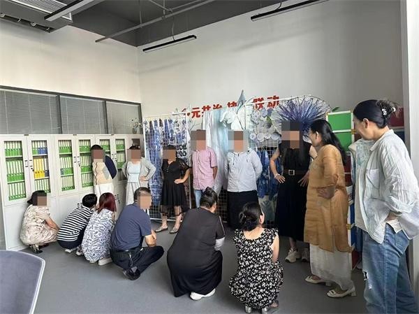 7月18日,在山东省临沂市兰山区人民法院“青橙计划”开设的家庭教育指导课上,家长们被要求扮演蹲在地上的“接受者”,换位思考。受访者供图