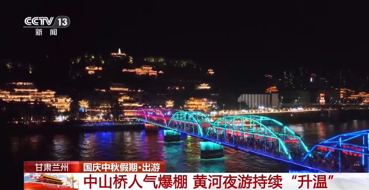 这两天,甘肃兰州百年铁桥披上七彩霓裳。游客们或漫步桥上,感受晚风与灯光交融的浪漫,或登上“夜游黄河”游船,沿航线欣赏两岸都市夜景,在古今交织中体验兰州新活力。在金城关景区,璀璨的灯光与奔流的黄河共绘节日里的靓丽画卷。游客们品尝着当地特色小吃,在文创摊位前选购黄河主题冰箱贴、书签等商品,感受假日惬意时光。