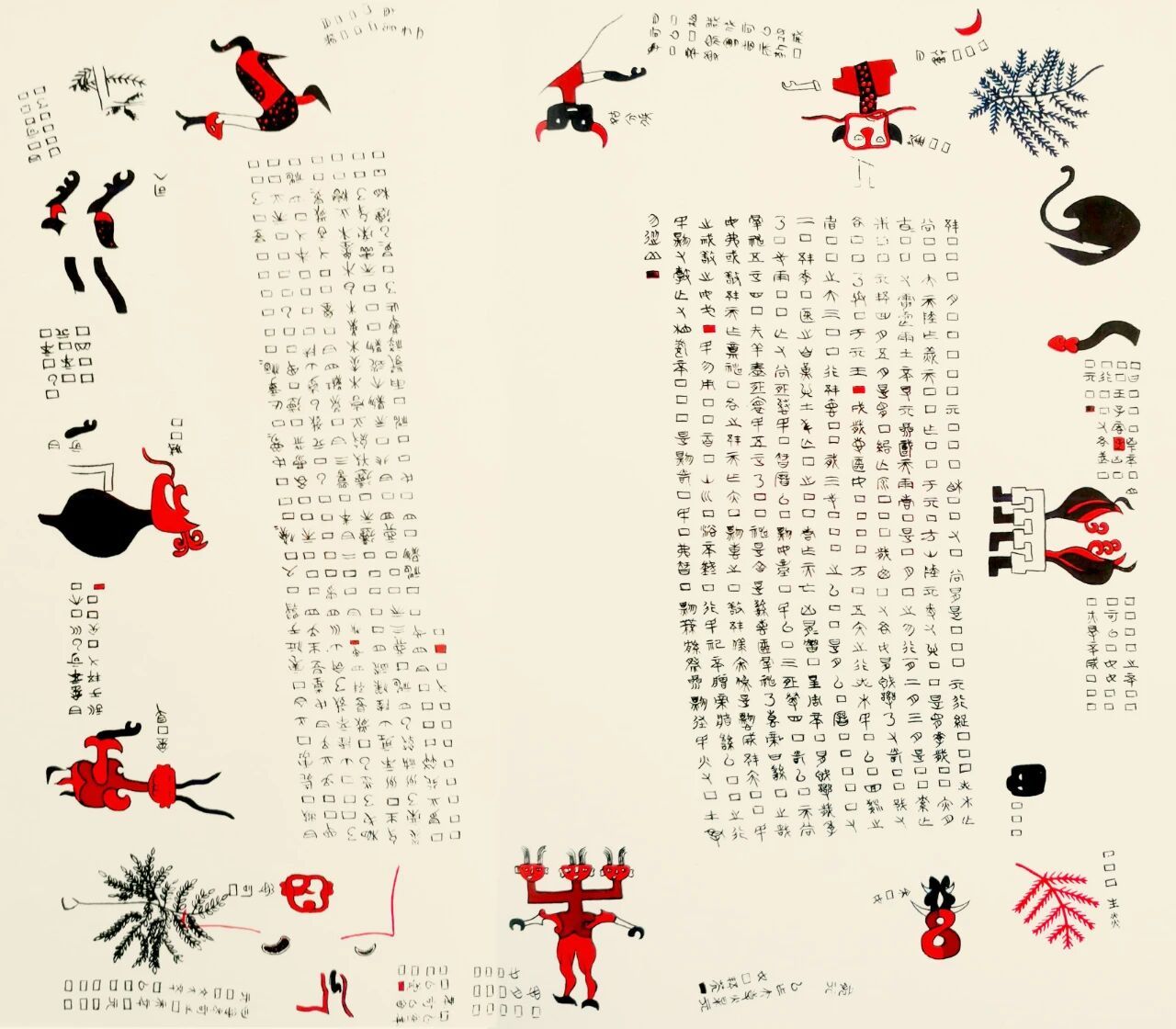 帛书四角绘有青、赤、白、黑四色树木