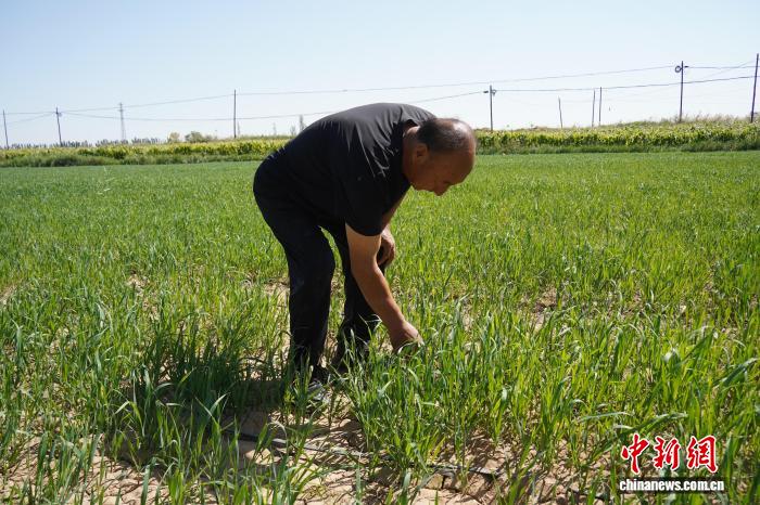 图为许忠厚查看燕麦草生长情况。侯旭佳 摄