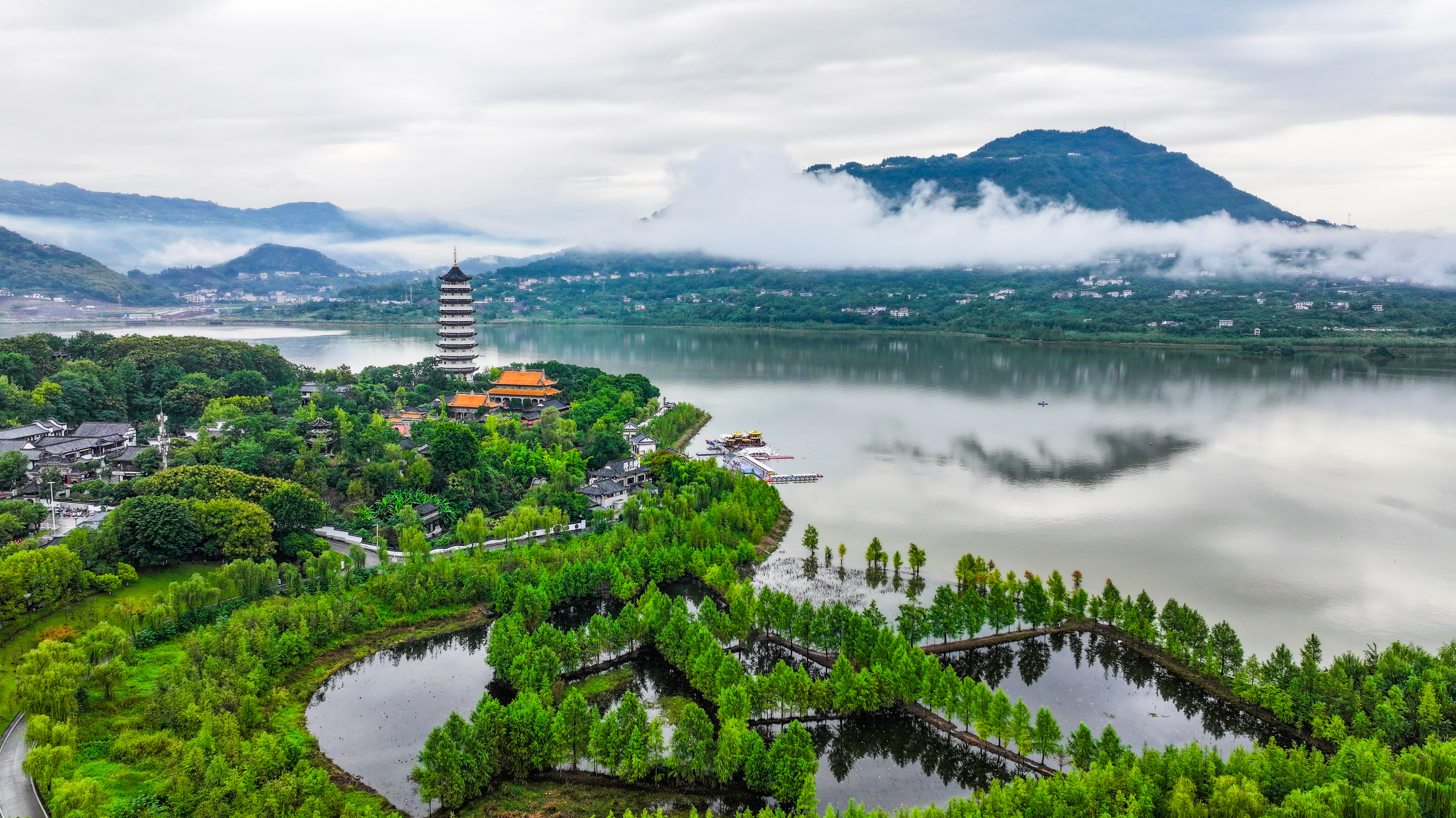 这是2025年10月17日拍摄的重庆市开州区汉丰湖景象(无人机照片)。新华社记者 王全超 摄
