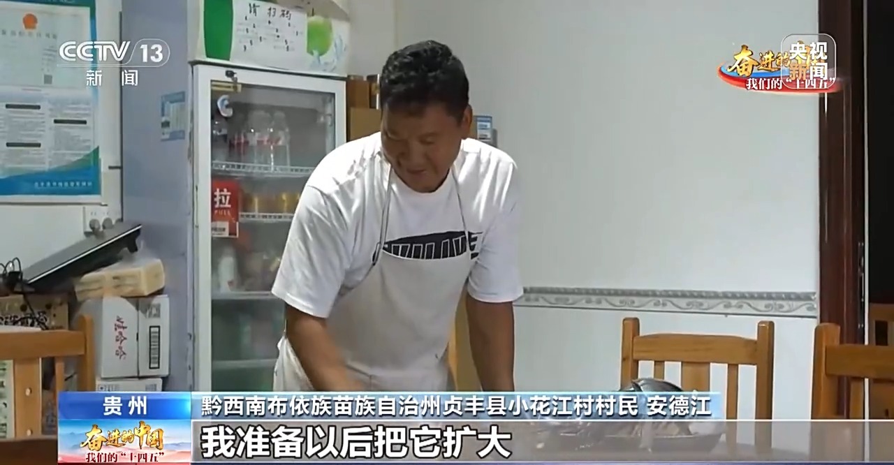 黔西南布依族苗族自治州贞丰县小花江村村民 安德江:天天都有订餐的,今天有10桌,明天有8桌了,我准备以后把它扩大。