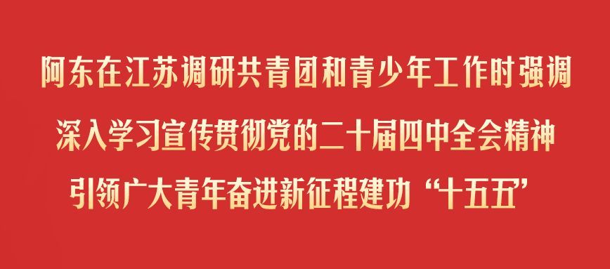 调研组走进团江苏省委机关,了解共青团重点工作开展情况。阿东强调,共青团、青联、学联、少先队要认真学习宣传贯彻党的二十届四中全会精神,深入开展主题学习,精心组织基层宣讲,扎实抓好教育培训,围绕党和国家工作大局深化各项工作,更好引领广大青年奋进新征程、建功“十五五”。要落实党建带团建制度机制,提升思想政治引领质效,推进全面从严管团治团走深走实。要抓好新兴领域团的建设“两个覆盖”攻坚,在积极建组织的同时,工作和服务及时有效跟进;通过新时代新希望工程、共青团“伙伴计划”,更好铸魂、助学、陪伴、赋能,拓展面向新就业群体及其子女的暖心服务。