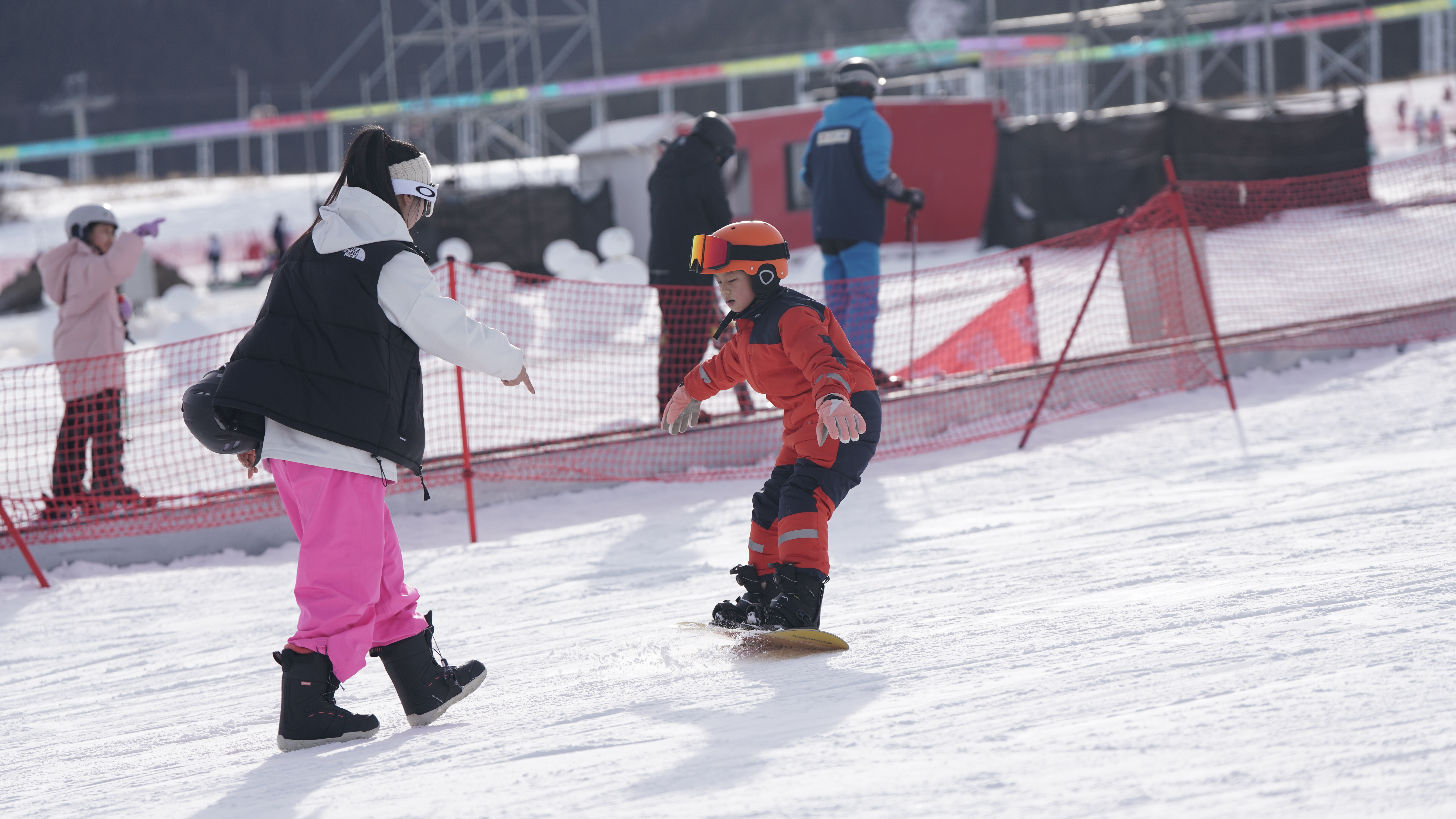 亲子互动是“雪假”另一道温暖的风景线。居民左彦菲特地调整工作时间,陪同孩子前来滑雪,“现在孩子学习压力不小,偶尔出来运动放松是非常必要的。”她手持手机记录着孩子从坡上滑下的瞬间,目光追随直至身影消失,又匆匆坐上缆车去山下等候。