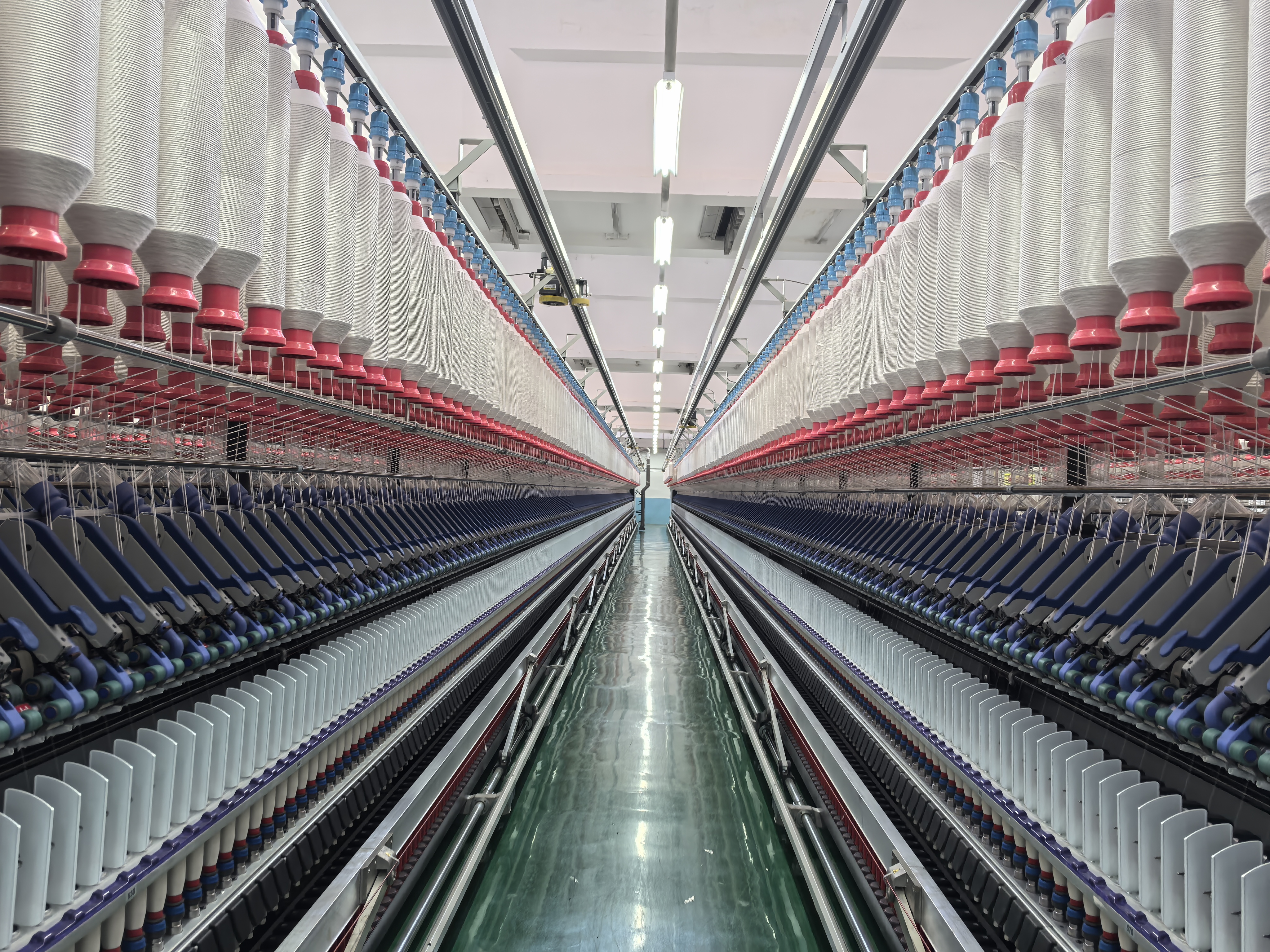 马口镇落后的生产模式逐渐成为“过去式”。今天,穿镇而过的105省道旁,纺织企业密集分布、绵延数里。随意走入一家企业,就能看见智能化生产场景:往复式抓棉机高效“吞吐”物料、空中流转系统平稳串联纺纱工序、数以万计的纱锭齐声飞旋,自动化生产线上,蓬松柔软的涤纶短纤历经多道工艺,最终变成一根根柔软又坚韧的缝纫线。