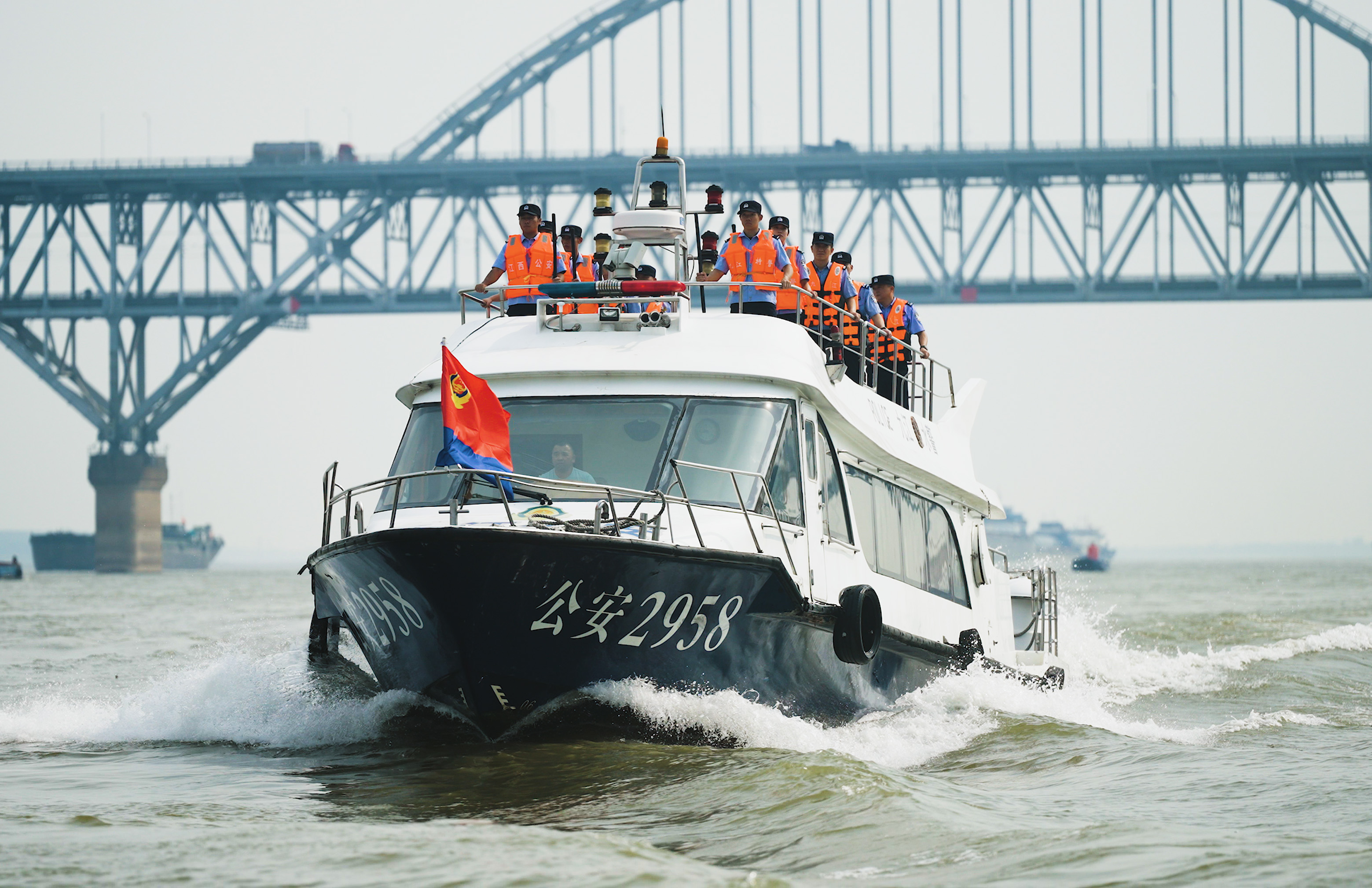 2025年9月,“一江三省四警”长江联合执法队在长江九江段水域巡逻。新华社发(柯洁男 摄)