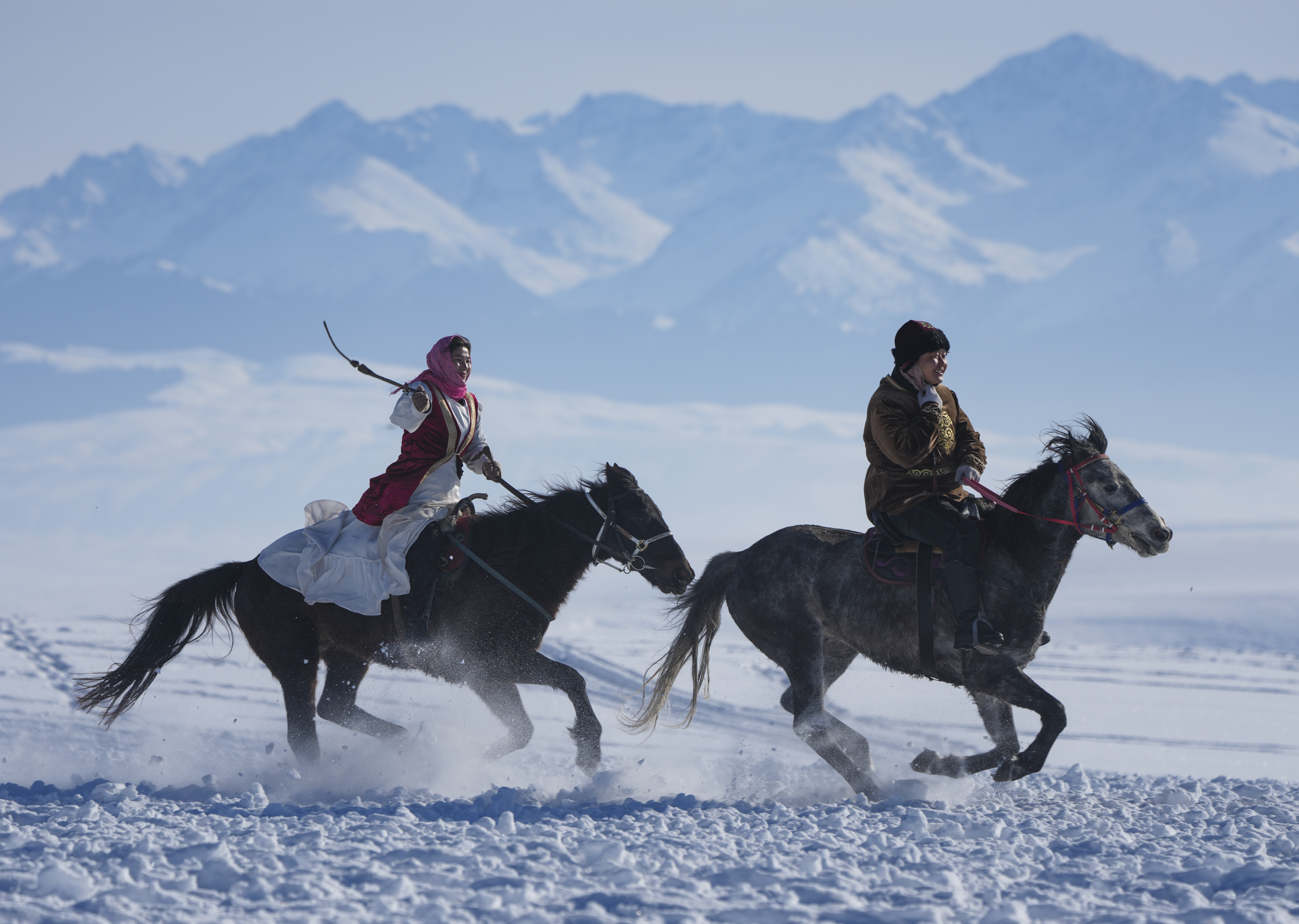 牧民马蹄踏碎雪域寂静