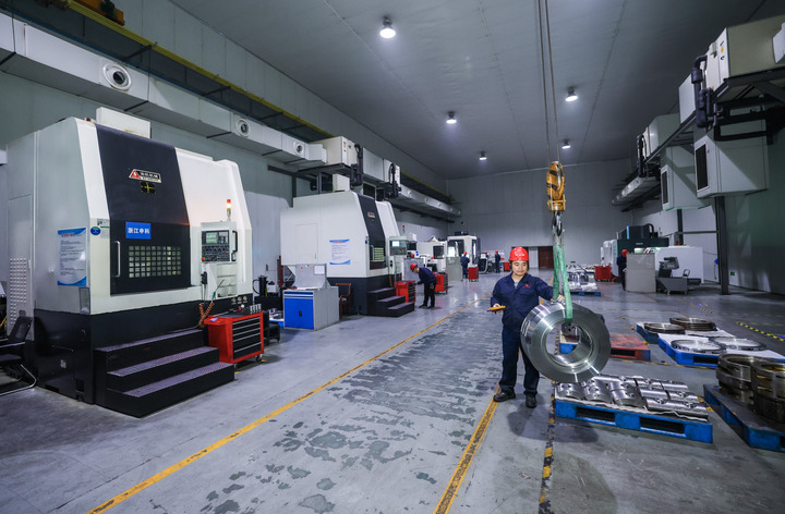在浙江省诸暨市璜山镇的申科滑动轴承股份有限公司轴承智能车间内,自动化设备在加工轴承(2026年1月20日摄)。新华社记者 徐昱 摄