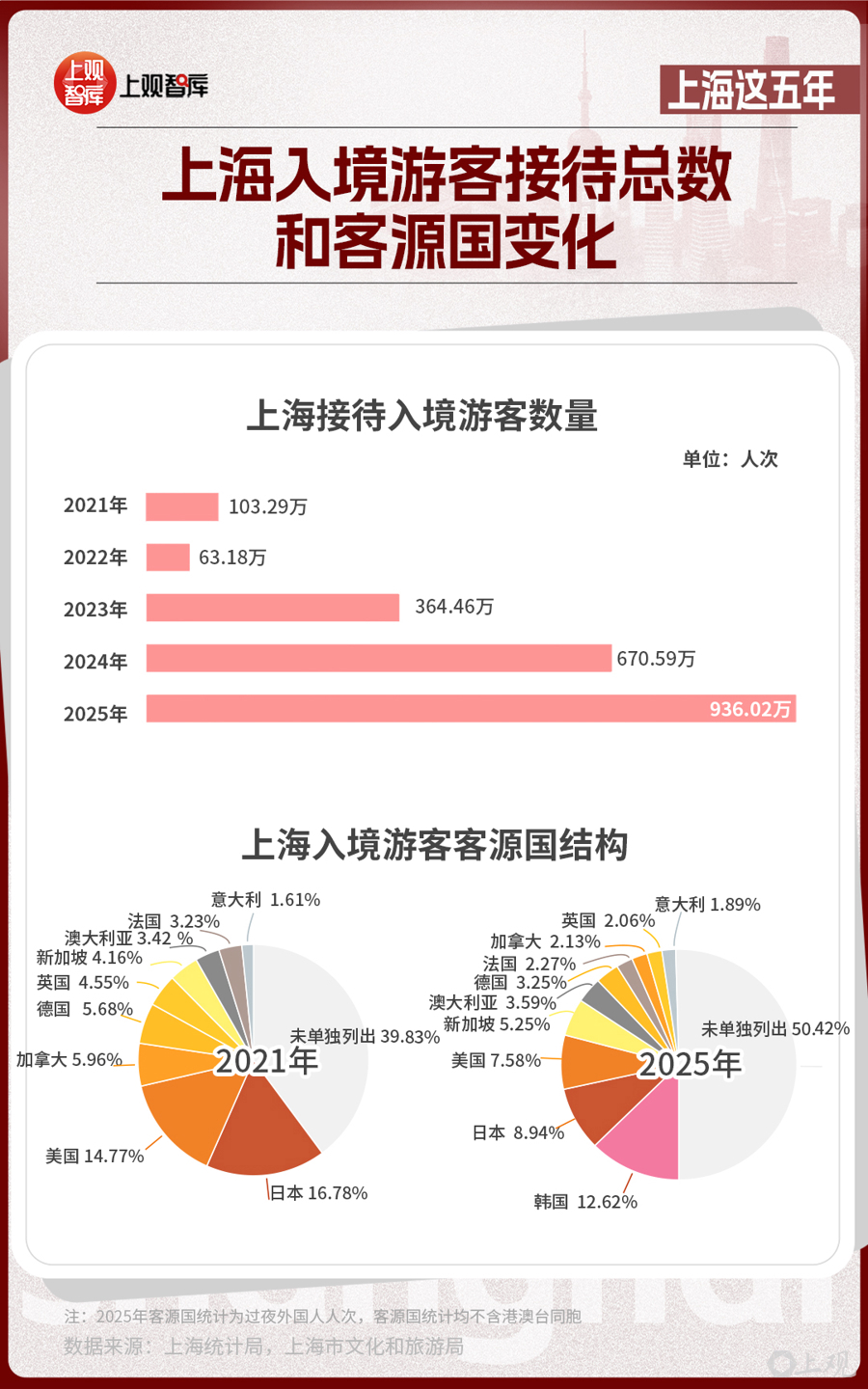 开放的上海,在全球的魅力日益提升。乘着免签政策东风,上海在入境游赛道走出强劲上升曲线,“中国入境游第一站”吸引力持续攀升。去年全年,上海接待入境游客总量936.02万人次,创下历史新高,成为全球游客感知中国文化、体验都市魅力的首选目的地。