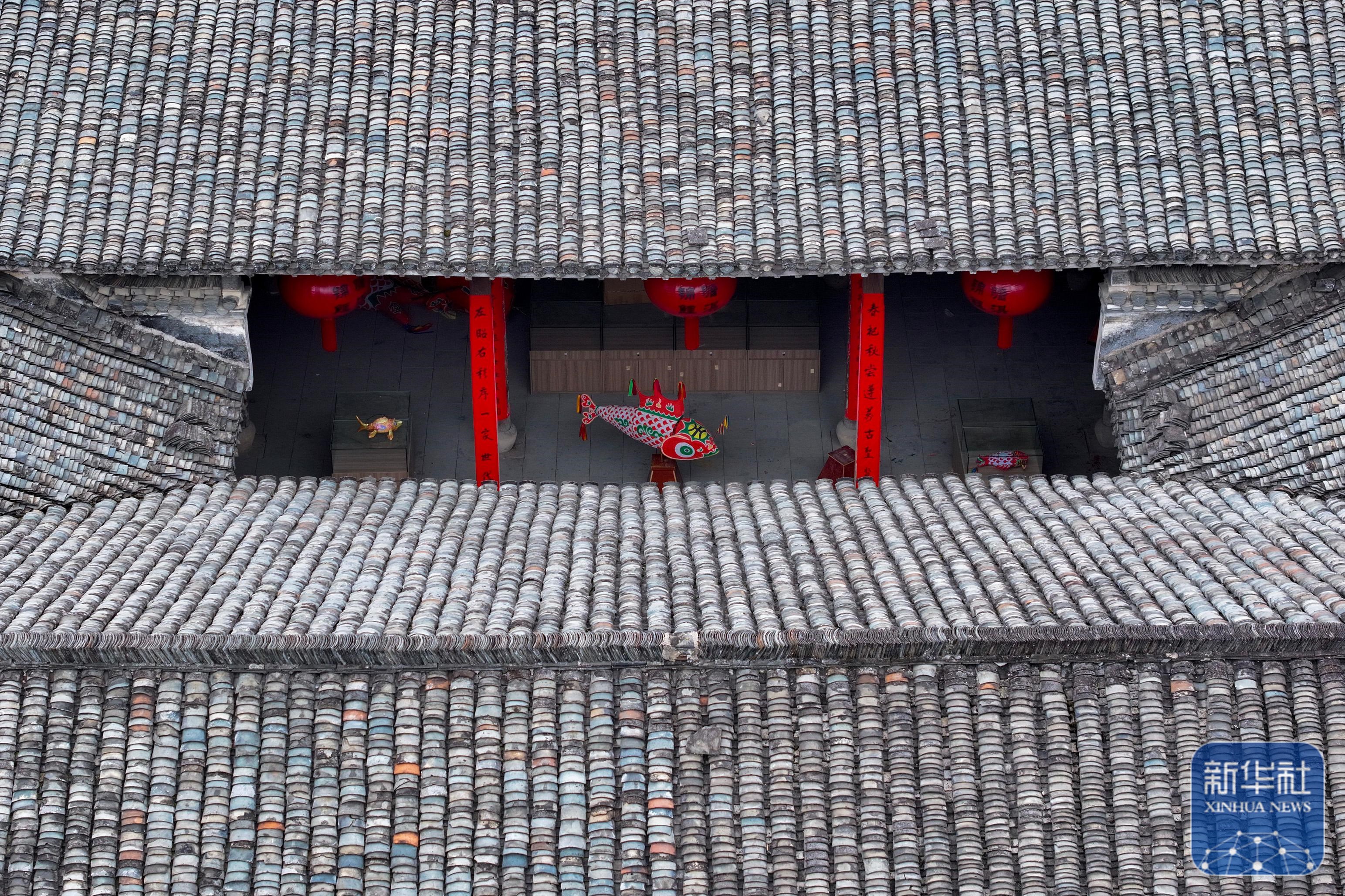 1月29日拍摄的瞻淇村内的祠堂敦睦堂(无人机照片)。