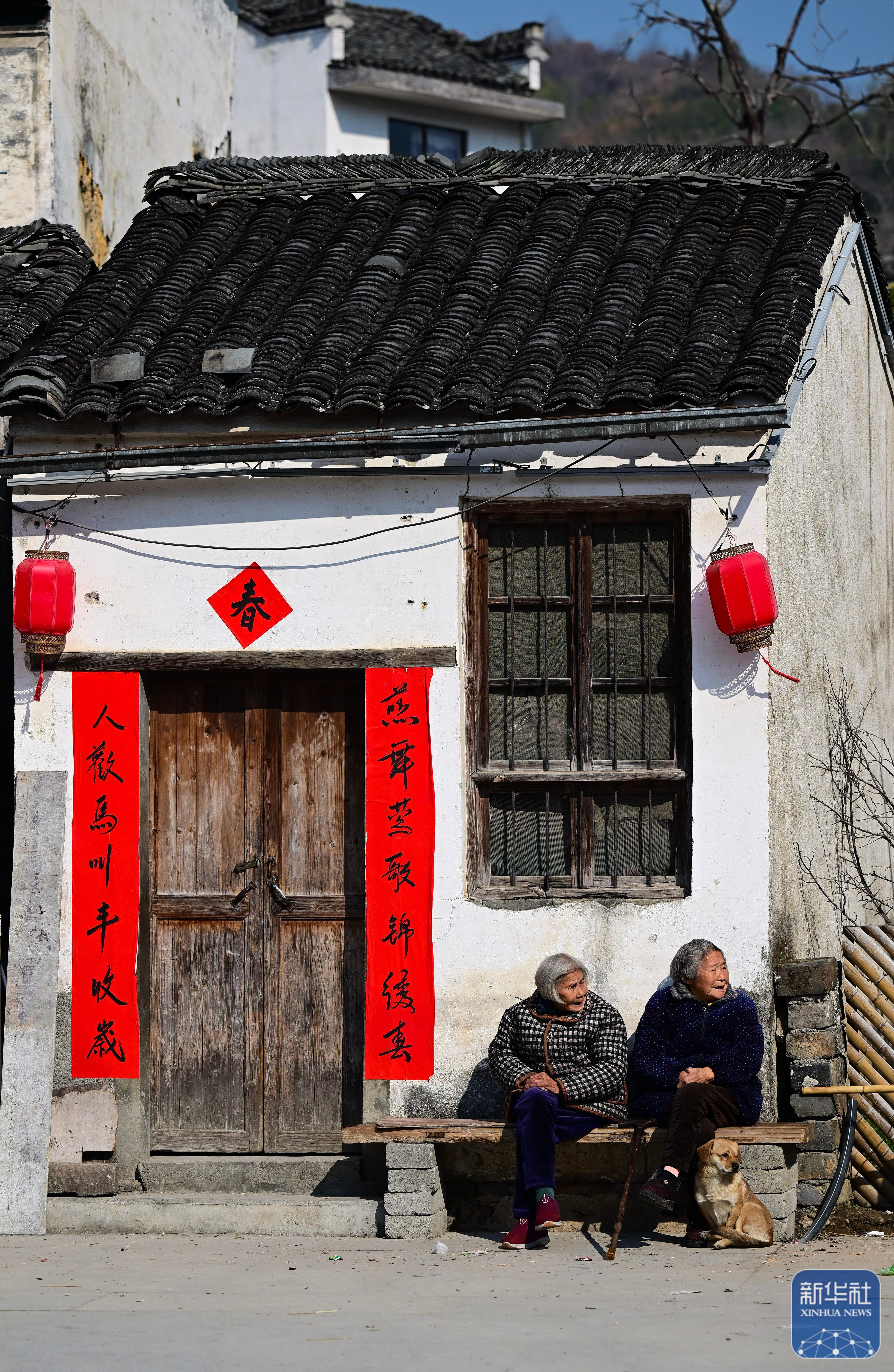 2月8日,村民在瞻淇村晒太阳。