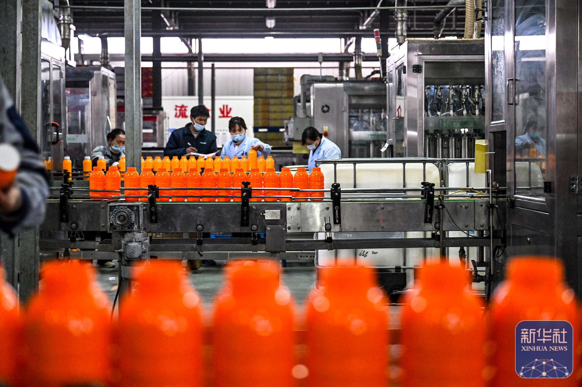 ↑ 2月24日,在河南省商丘市睢阳区一家农资生产企业,工人在除草剂灌装生产线上忙碌。新华社发(李恒摄)