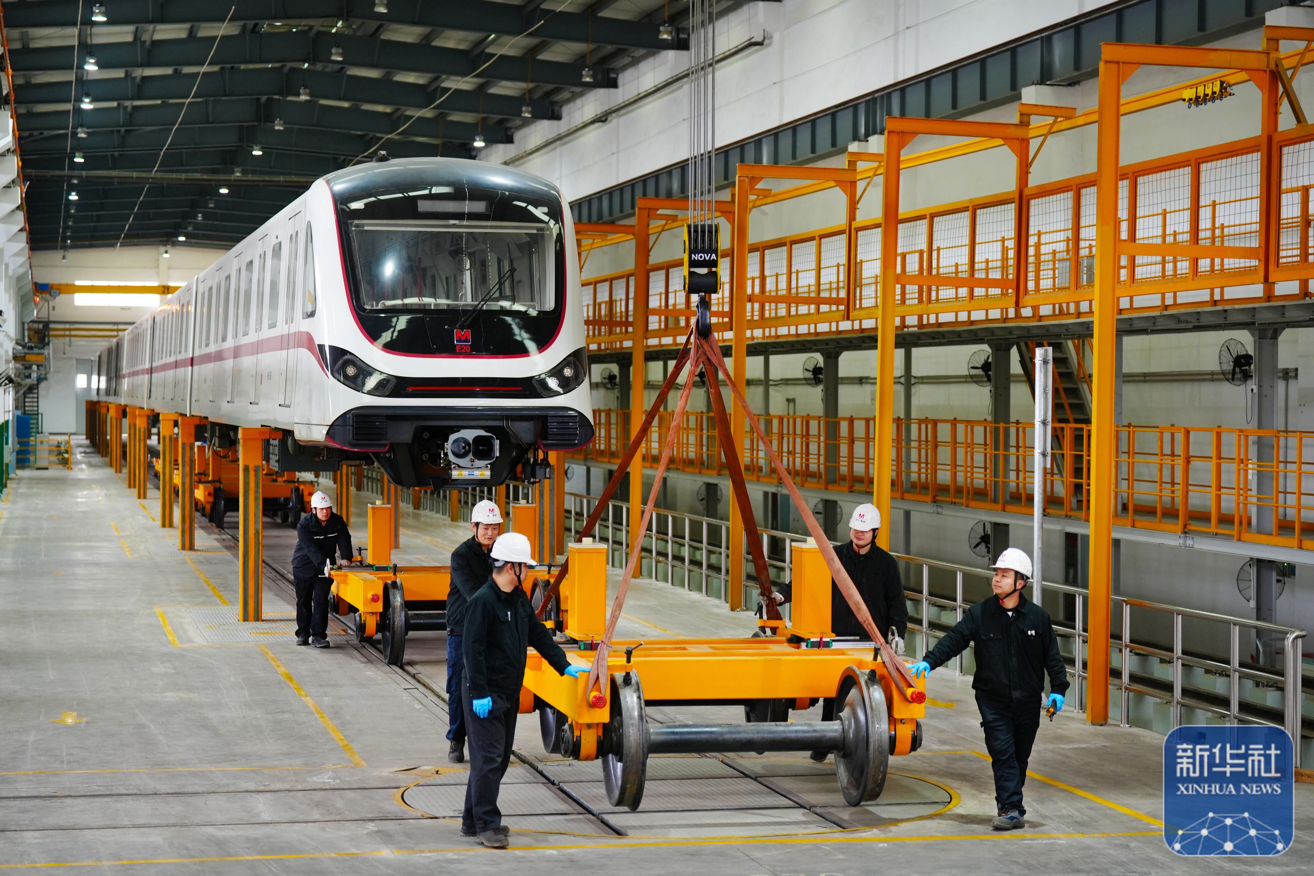 ↑ 2月24日,武汉地铁检修人员对地铁5号线的设备进行巡查。新华社发(产启斗摄)
