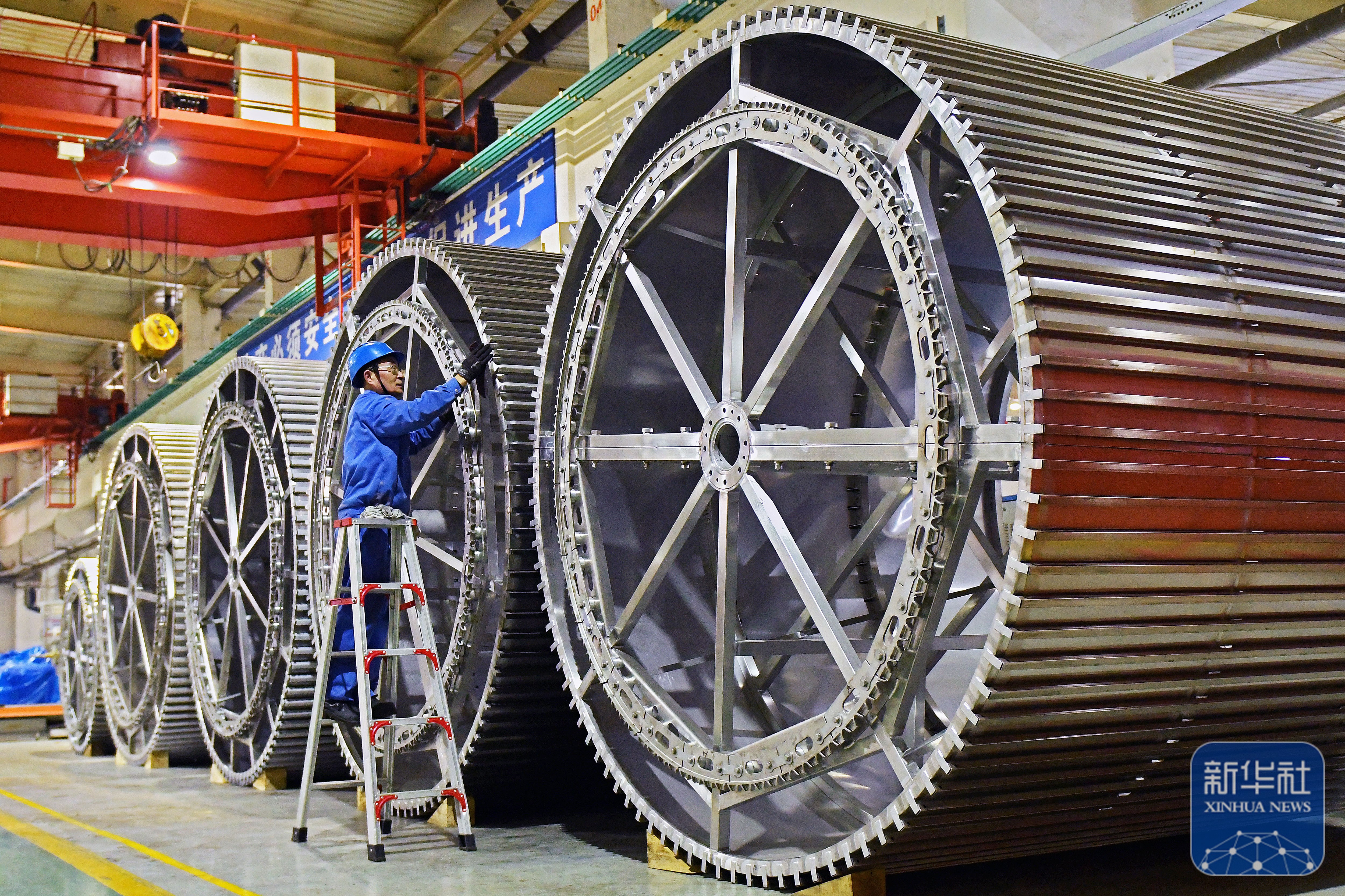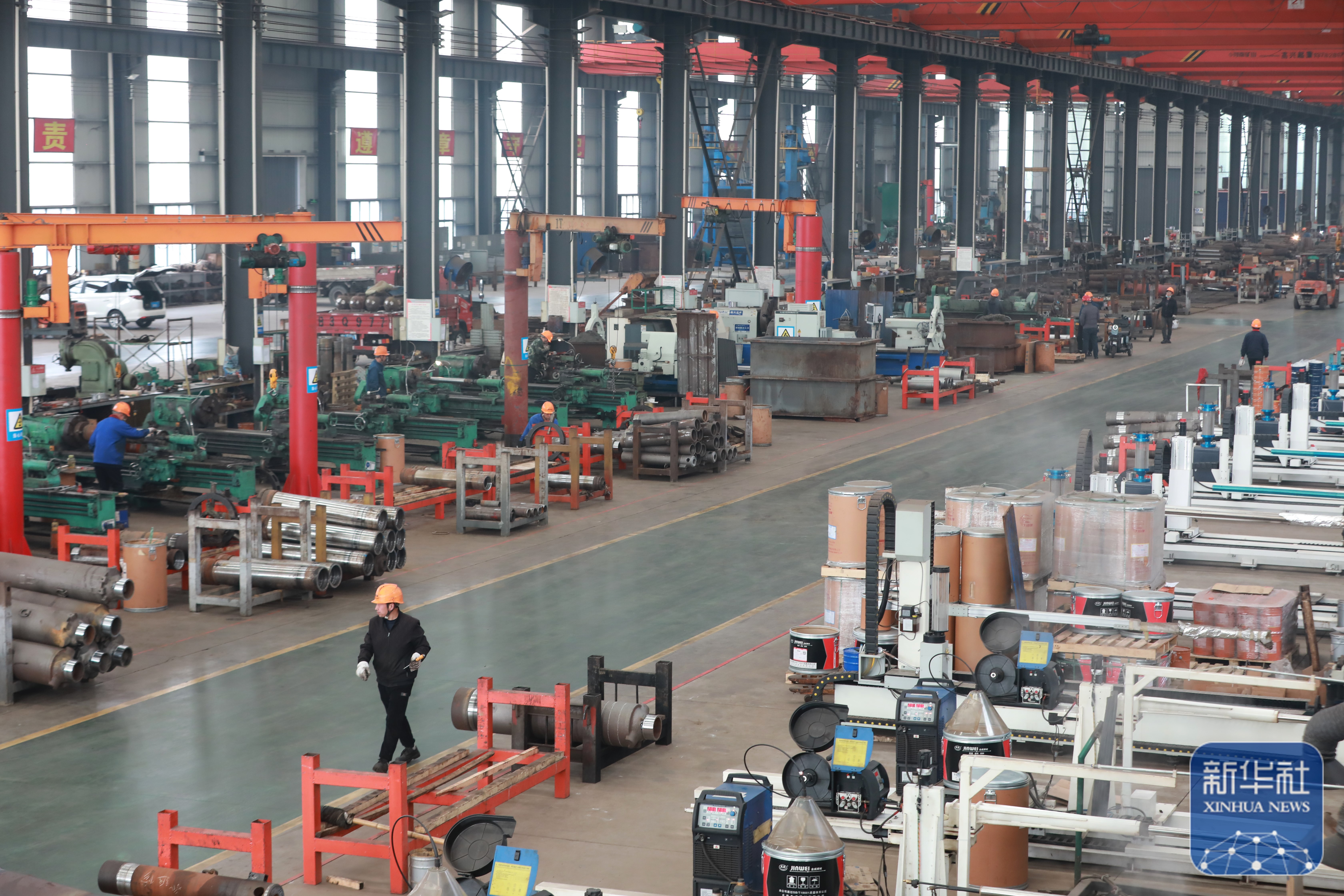 ↑ 2月24日,在河南省洛阳市中信重工生产车间,工人在加工生产订单产品。新华社发(张怡熙摄)